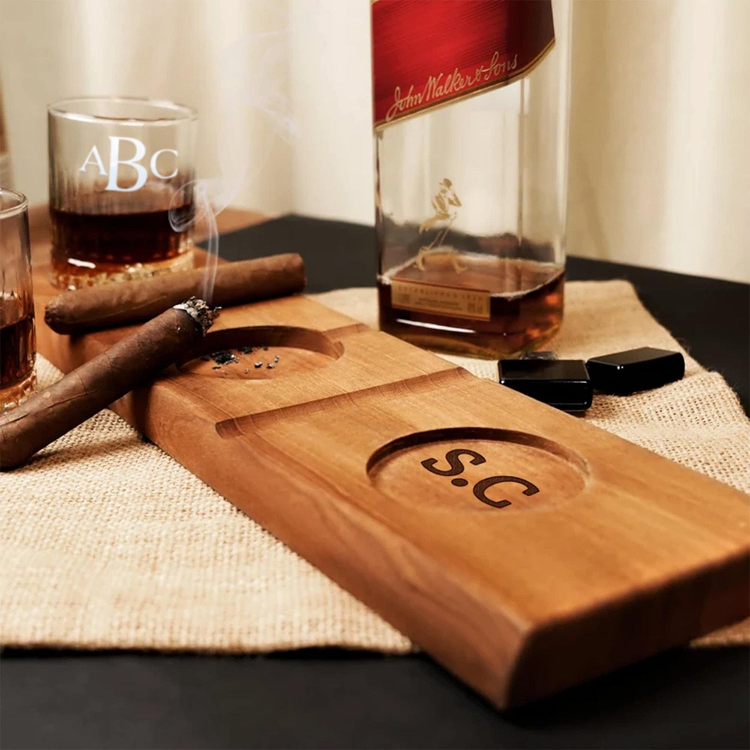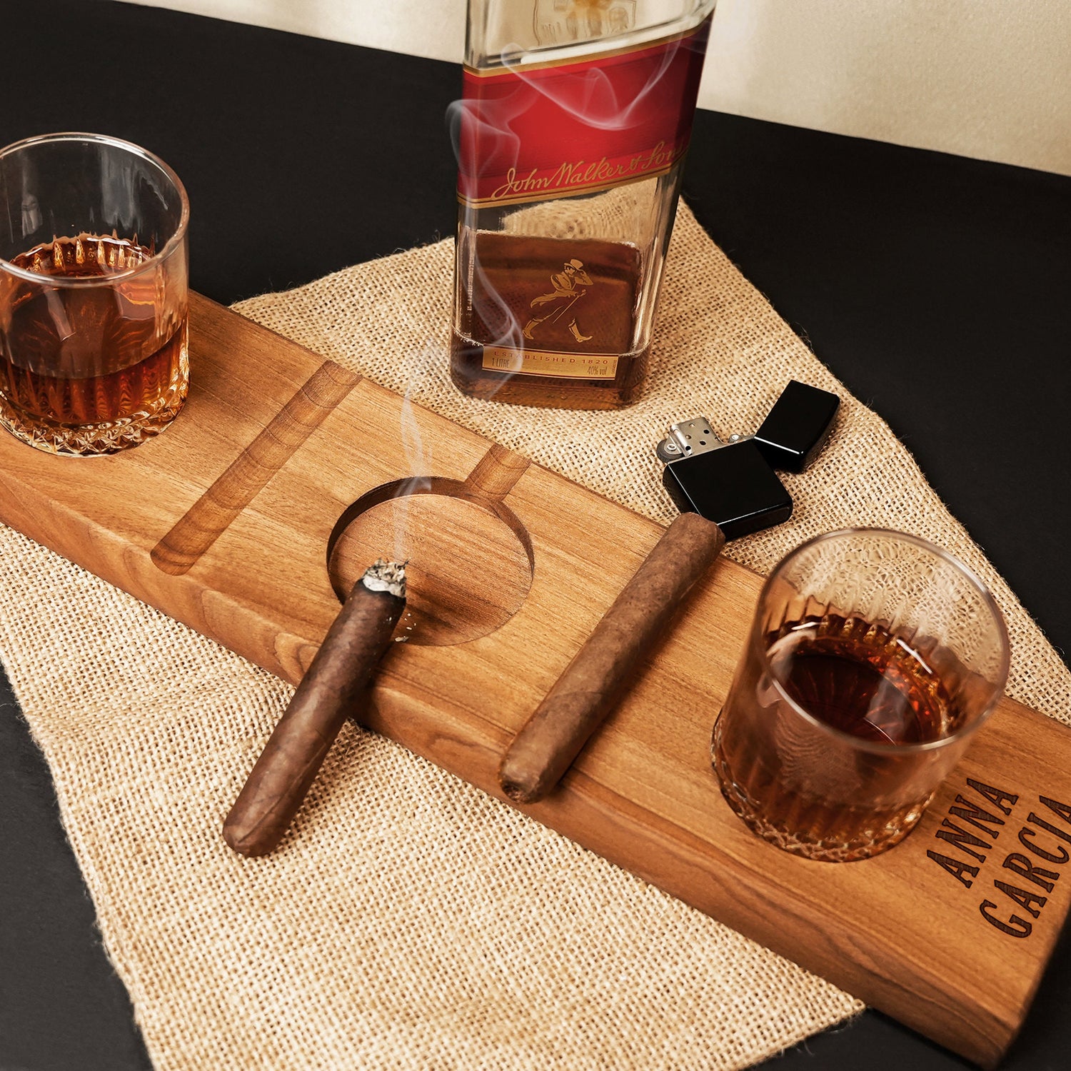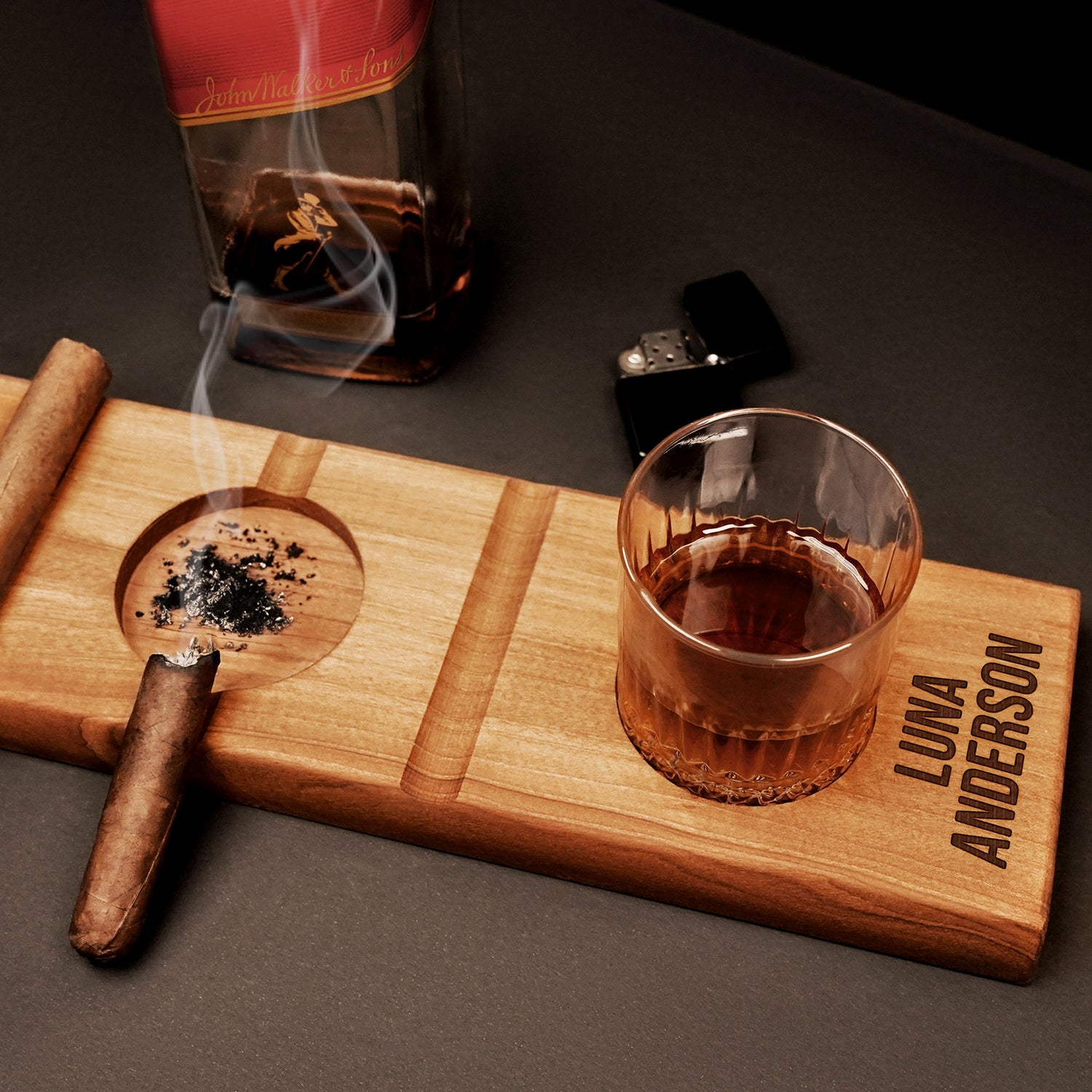 Custom Engraved Cigar Ashtray With Whiskey Glass Holder, Father's Day Gift, Personalized Dad Birthday Gift, Home Bar Decor, Gift Set for Men