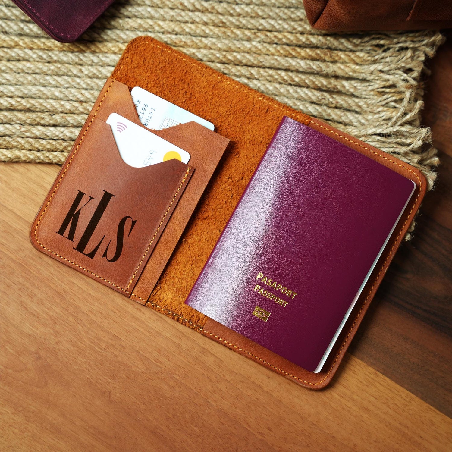 Custom Monogram Leather Passport Case, Luxury Leather Travel Organizer, Personalized, Anniversary Gift, Passport Sleeve, Travel Accessories