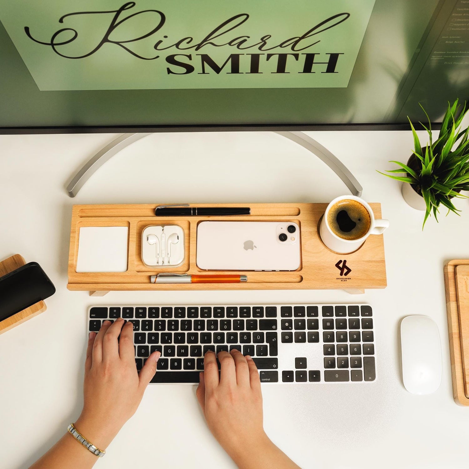Contact us to create the perfect custom-engraved desk organizer. We offer free mockups so you can visualize your dream setup and ensure it's perfectly aligned with your tech-savvy style.