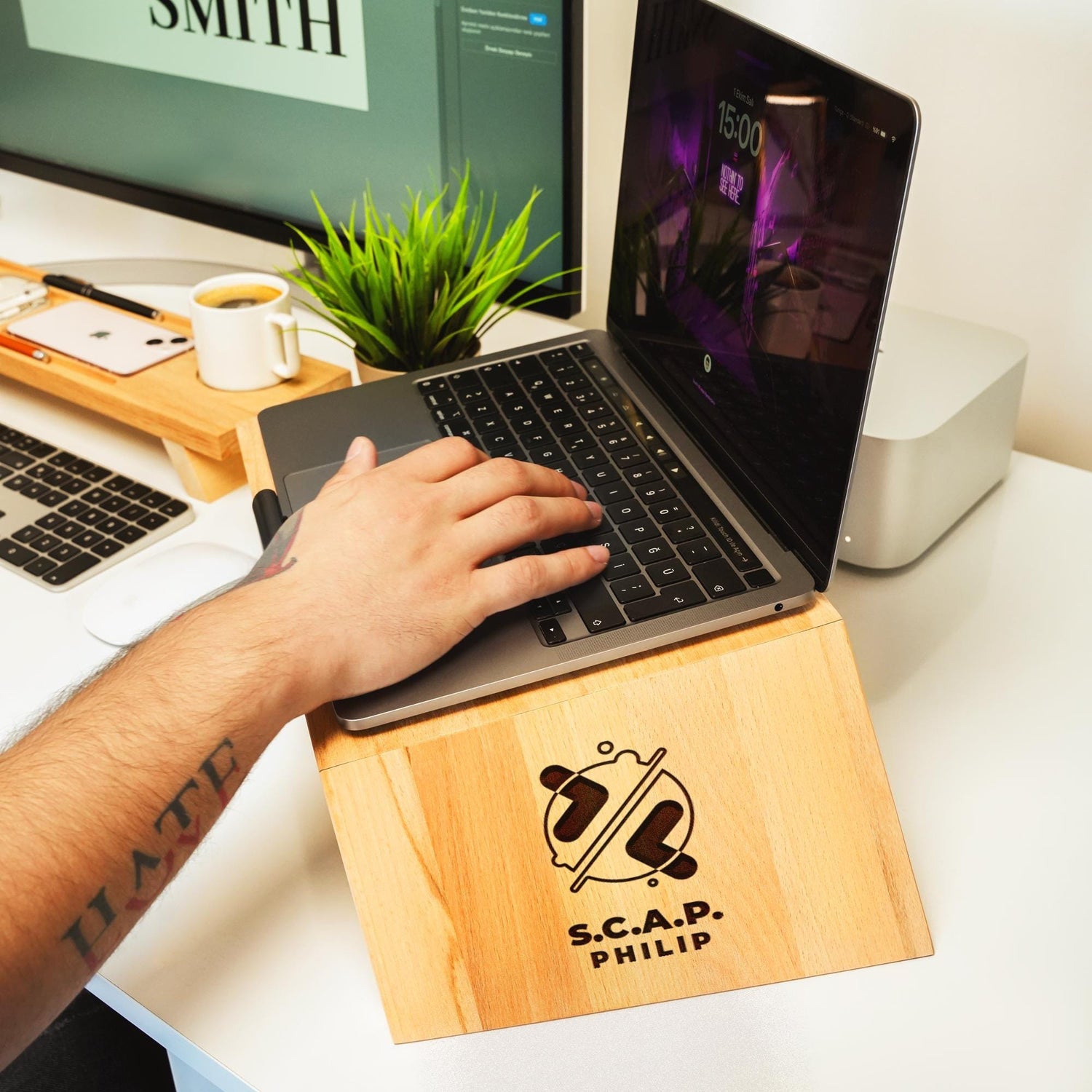 Custom Engraved Laptop Stand: A stylish and ergonomic stand designed to promote good posture and create a more comfortable work environment.