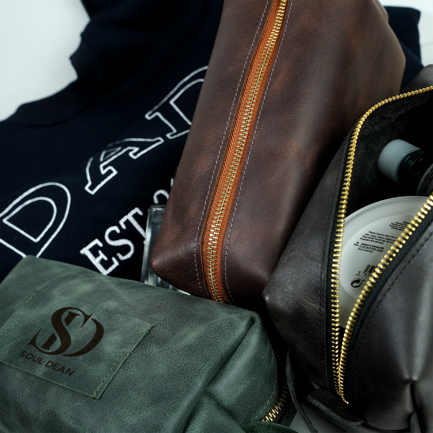Forget ordinary gifts. This high-quality, rugged genuine leather Dopp Kit offers sophisticated style and essential functionality. It's the ideal size for travel, the gym, or keeping grooming essentials organized at home. The durable zipper and classic design ensure it will be a cherished accessory for years to come.