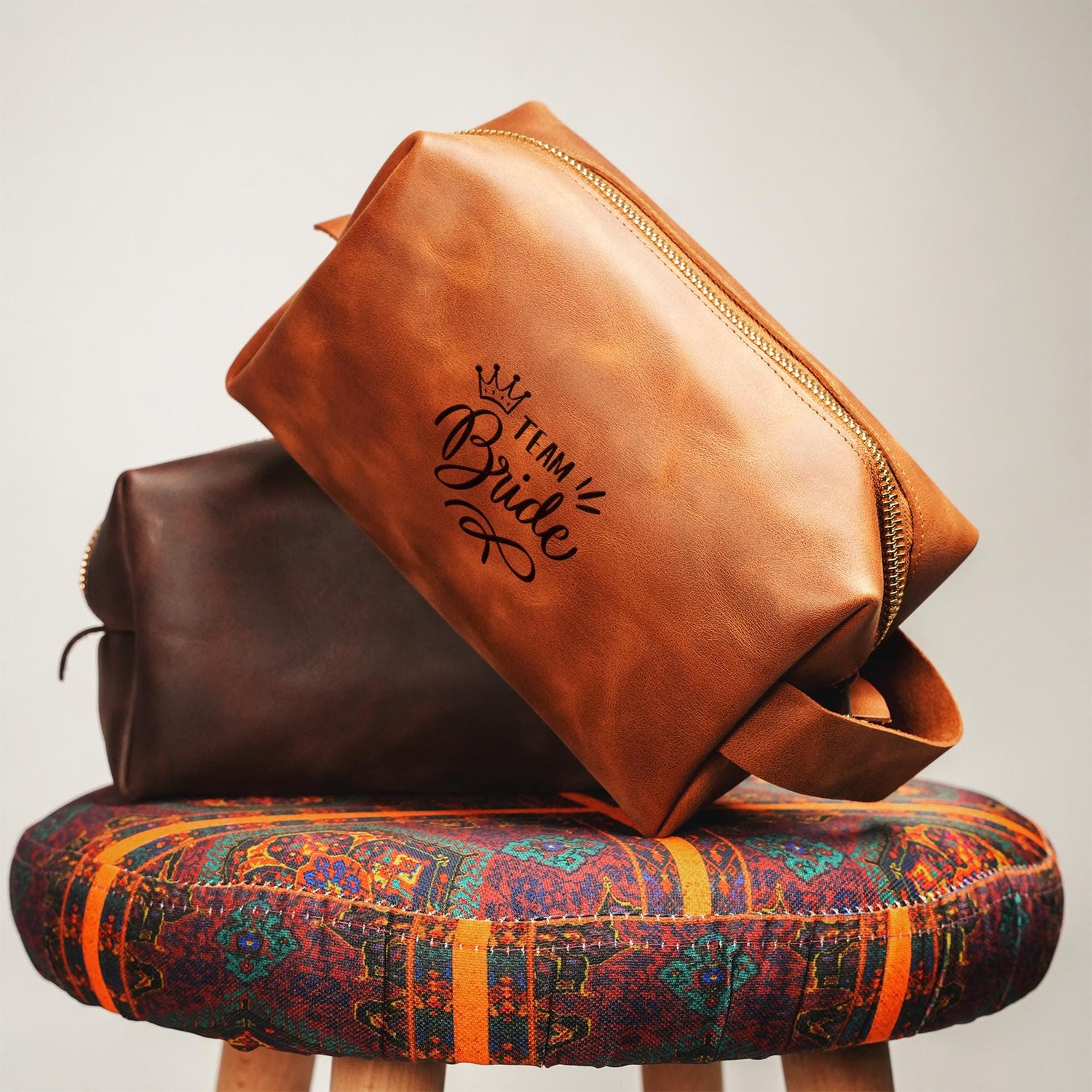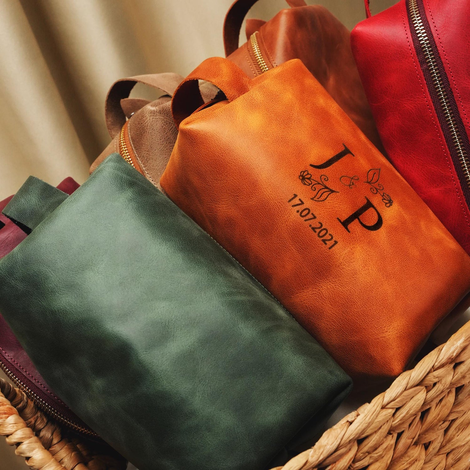 Celebrate your bridesmaids with personalized leather makeup bags that are as unique as their friendship. These elegant, handcrafted clutches are the perfect way to express your appreciation and add a touch of personalized charm to your wedding celebrations.