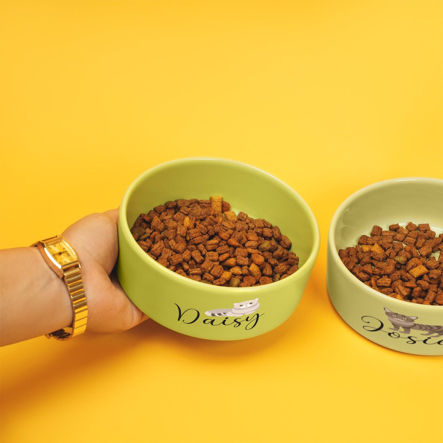 • Custom designed just for them: Create a truly unique bowl by personalizing it with your cat's name, a special photo, or choose from a variety of fun designs.