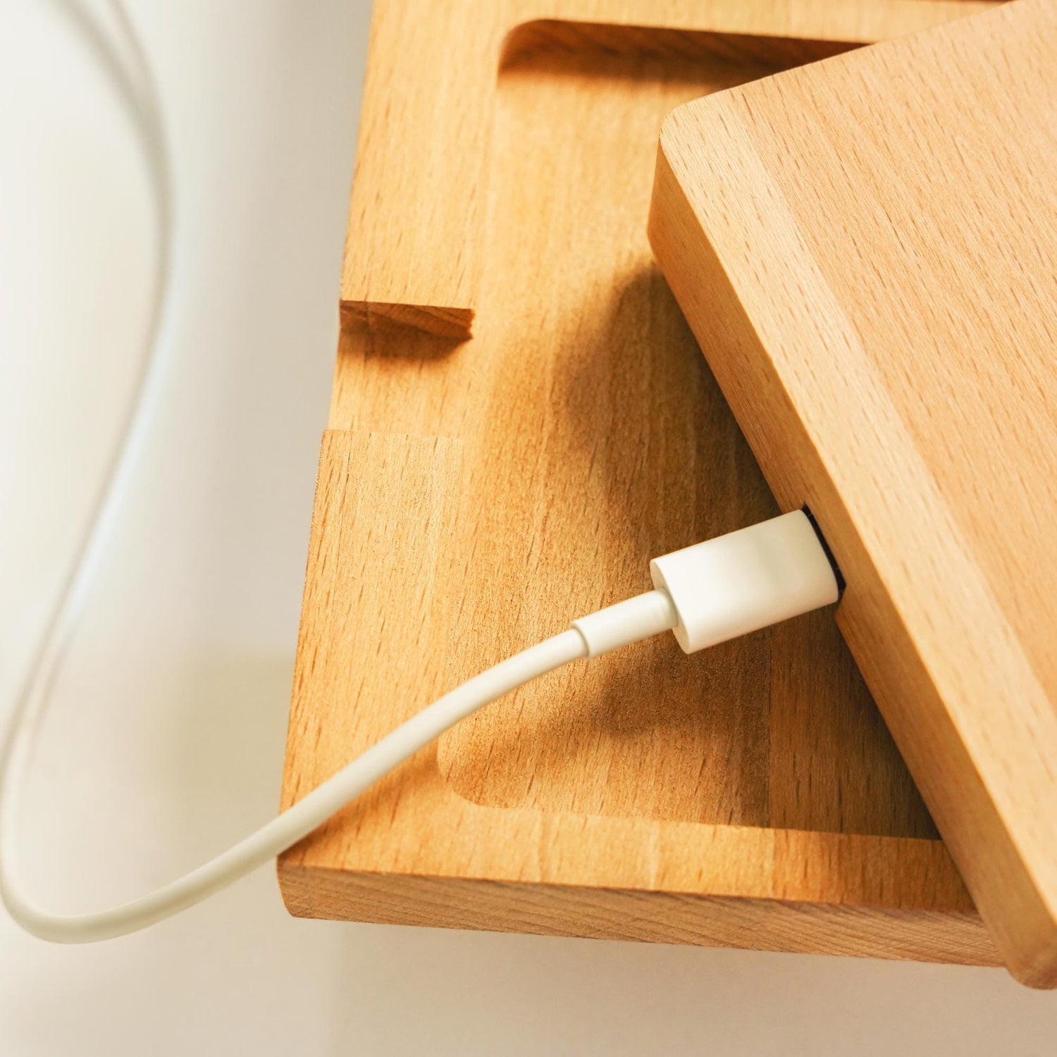 This handcrafted wooden organizer is more than just a place to keep your phone handy; it's a beautiful and practical addition to your desk, designed to create a more organized and inspiring workspace.