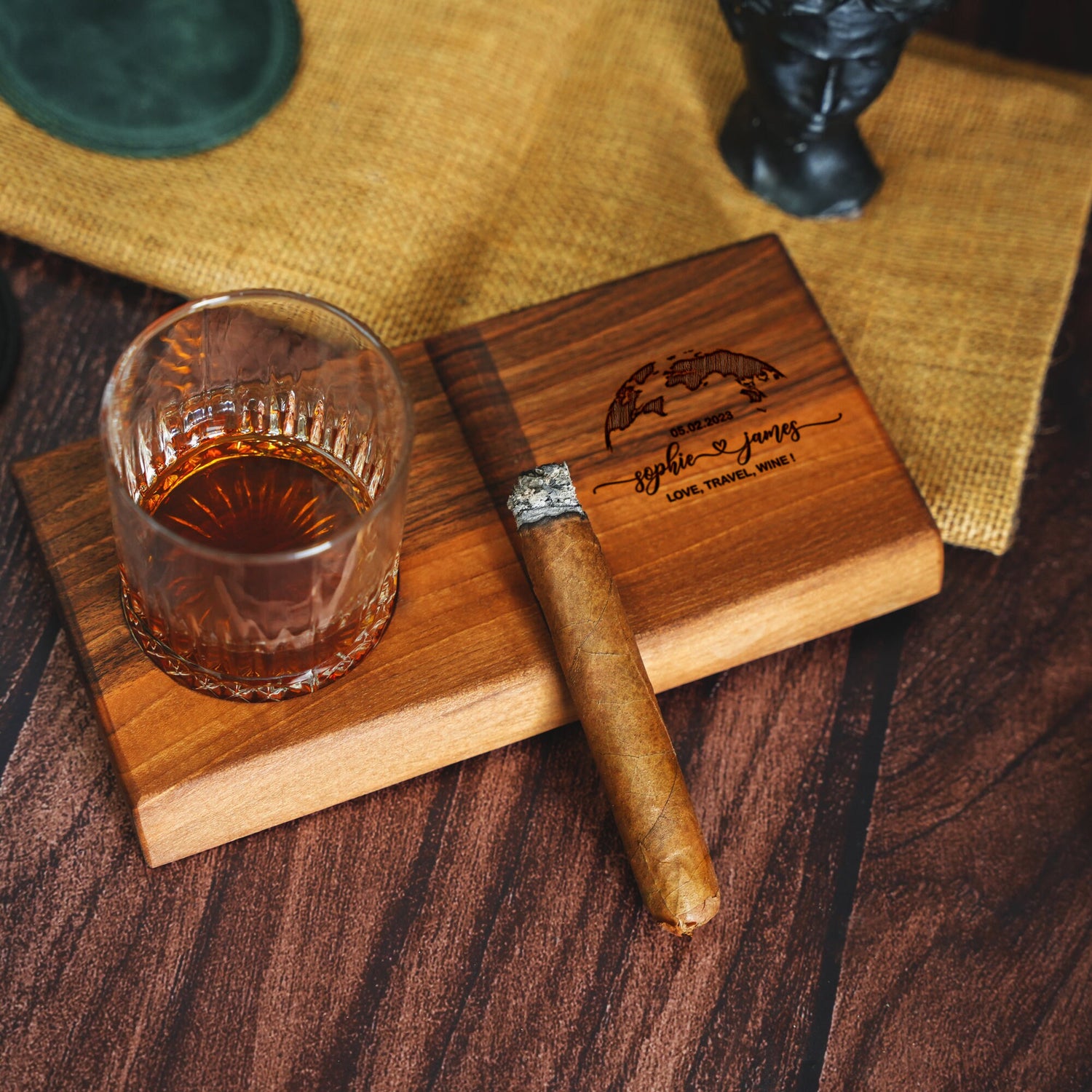 Personalized Home State Map Wooden Cigar Holder, Custom Map Cigar Ashtray, Housewarming Gift, State Map New House Gift, Personalized Gift
