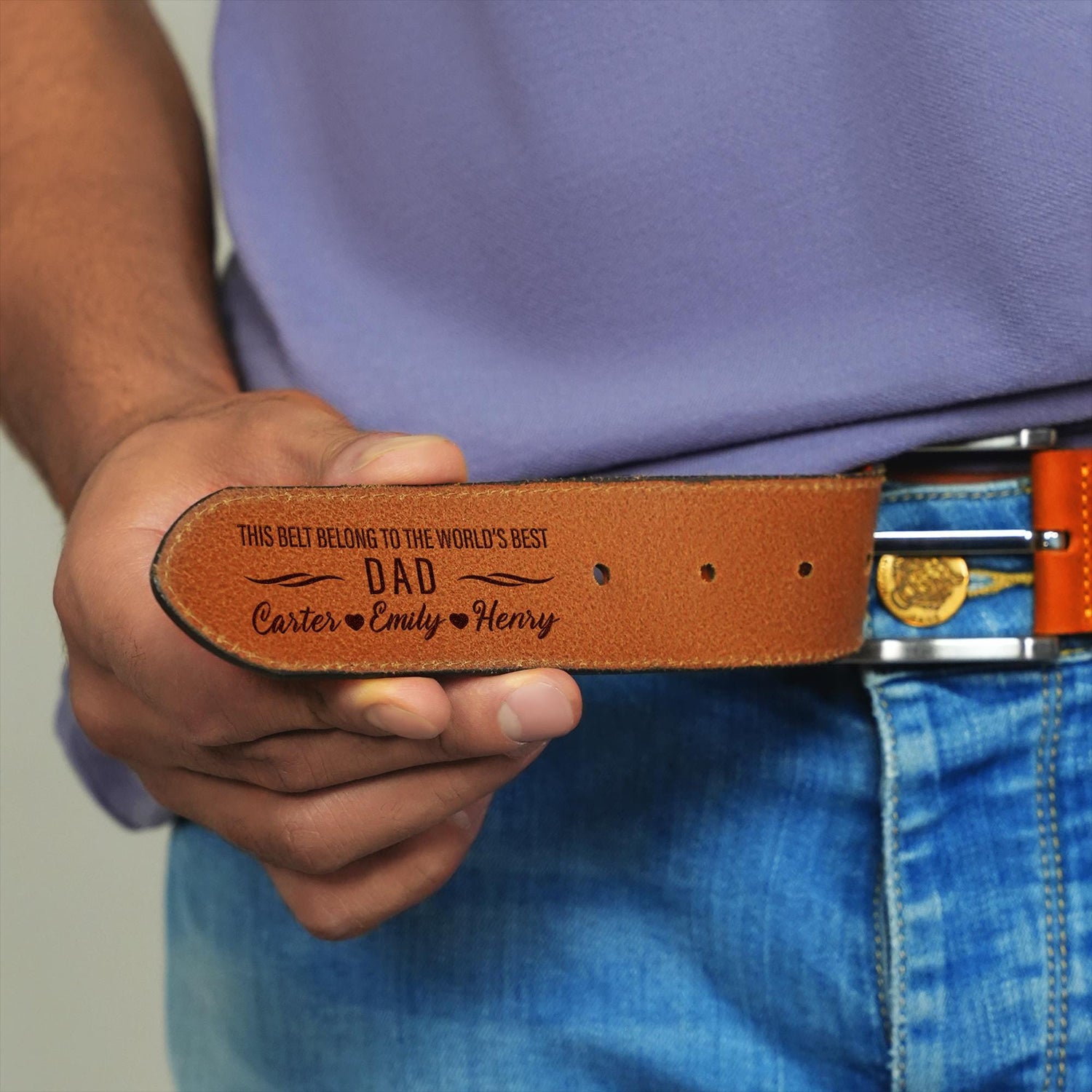 Personalized Leather Belt for Dad, Fathers Day Gift, Full Grain Leather Mens Belt, Custom Laser Engraved Belt, Dad Birthday Gift, Papa Gifts