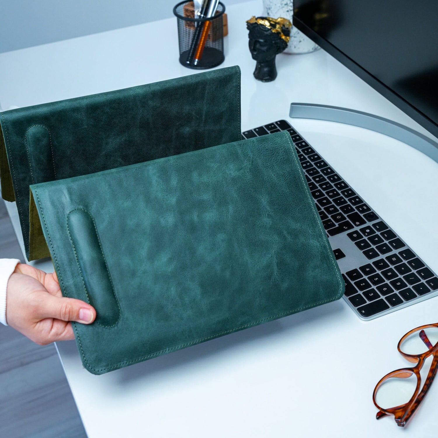 Imagine the feeling of sitting down at a desk that not only looks stylish but also feels comfortable and efficient. Our personalized leather accessories are designed to enhance your everyday experience, making tasks more enjoyable and productive.