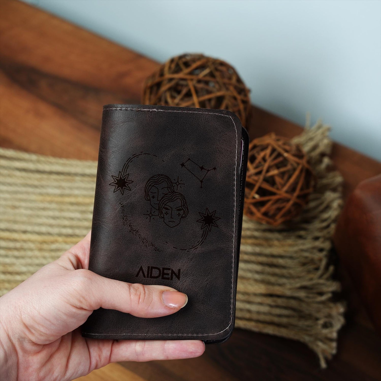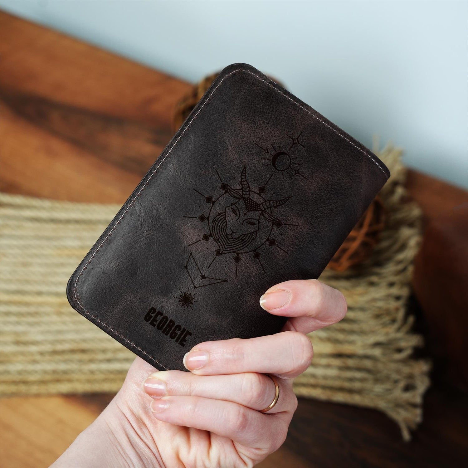 Travel the Cosmos in Style: Personalized Zodiac Leather Passport Holder for Her