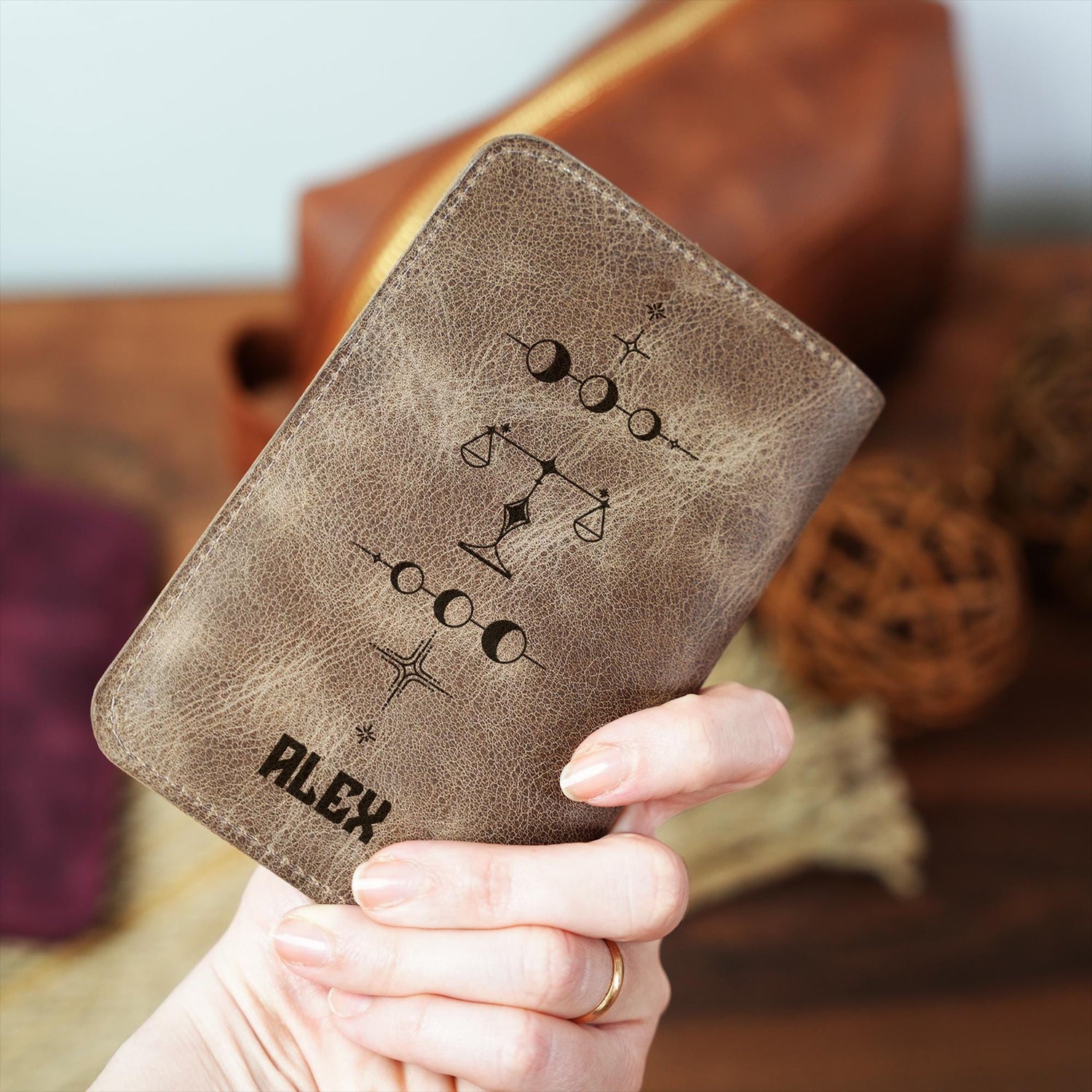 Personalized Leather Passport Holder Zodiac Gift, Custom Passport Wallet, Astrology Gift, Birthday Gift, Travel Essential, Passport Cover