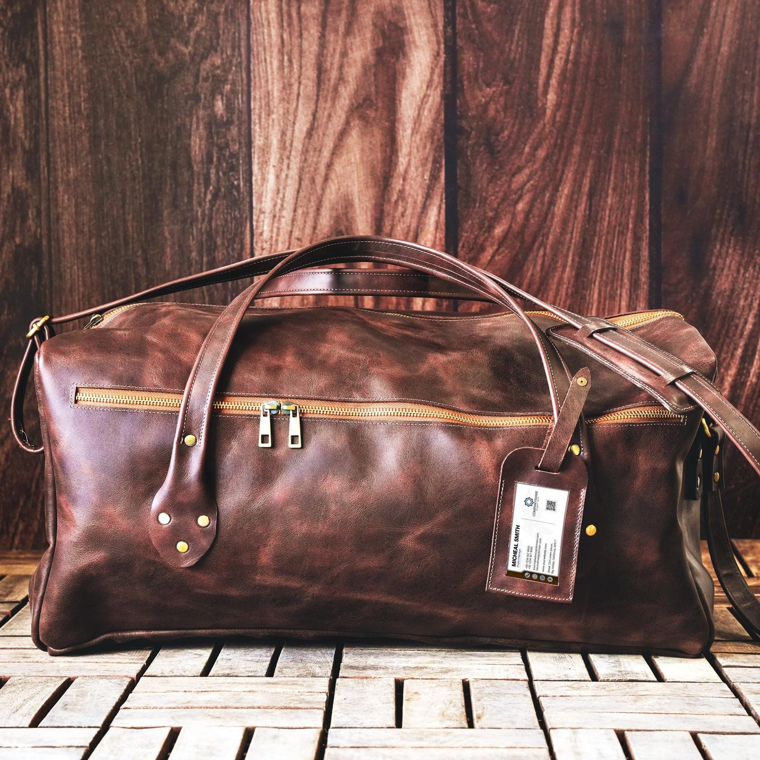 Personalized Leather Travel Duffle Bag, Custom Weekender Bag, Travel O – ArriaHome LLC