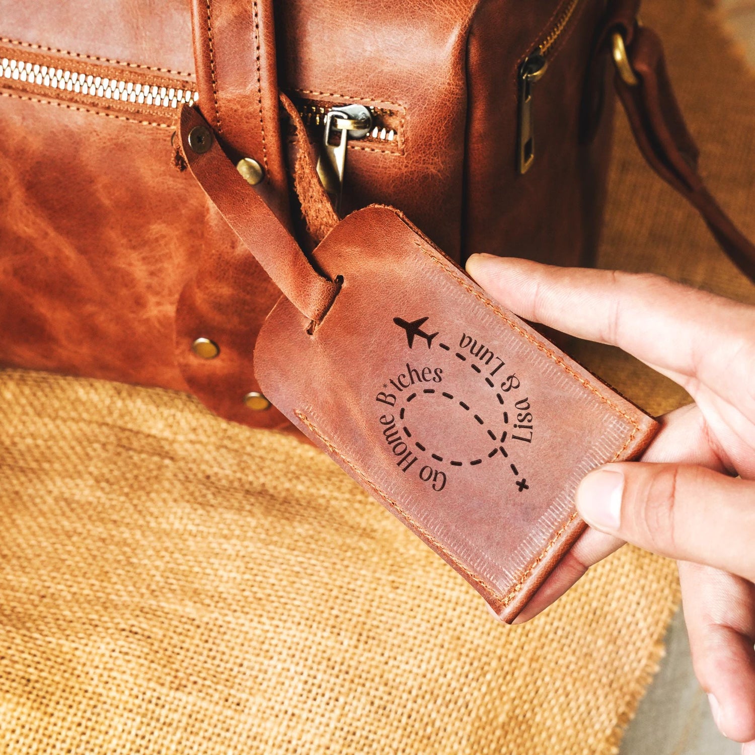 Personalized Men's Leather Travel Luggage Bag, Groomsmen Proposal Duffle Bag, Custom Wedding Gifts, Best Man Gifts, Leather Luggage Tags