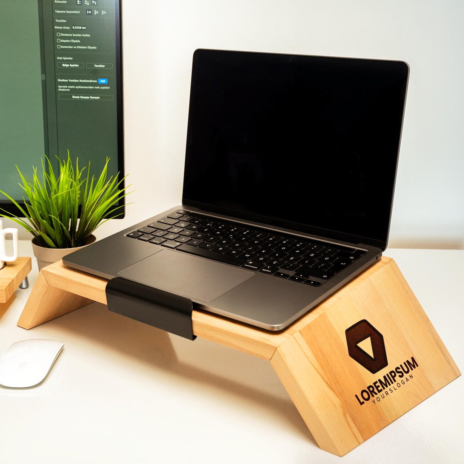 Wooden Engraved Laptop Stand: Ergonomically designed to promote good posture and create a more comfortable work environment, while also adding a touch of natural elegance to your desk.