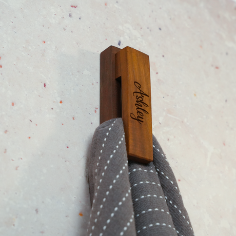 Wooden Wall Mount Hand Towel Holder: Midcentury Modern Bathroom Hooks, Housewarming Gift for Couples