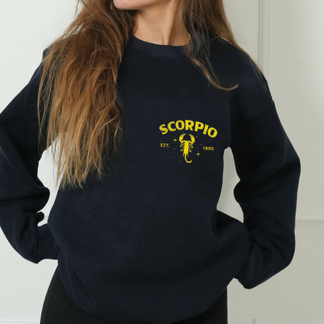 Embroidered Zodiac Astrology Sweatshirt: Personalized Horoscope Crewneck, Scorpio Birthday Gift