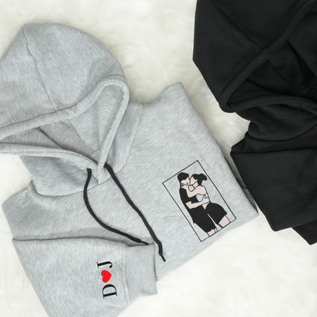 624.00TLUnit price /UnavailableCustom Couple Portrait Sweatshirt: Embroidered Family Photo with Initials on Sleeve, Christmas Gift