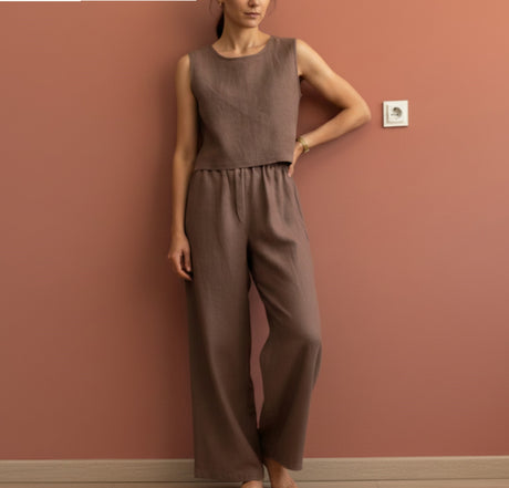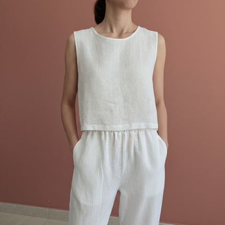 598.00TLUnit price /UnavailableLinen Sleeveless Cropped Basic Top for Women: Minimalist Handmade Blouse