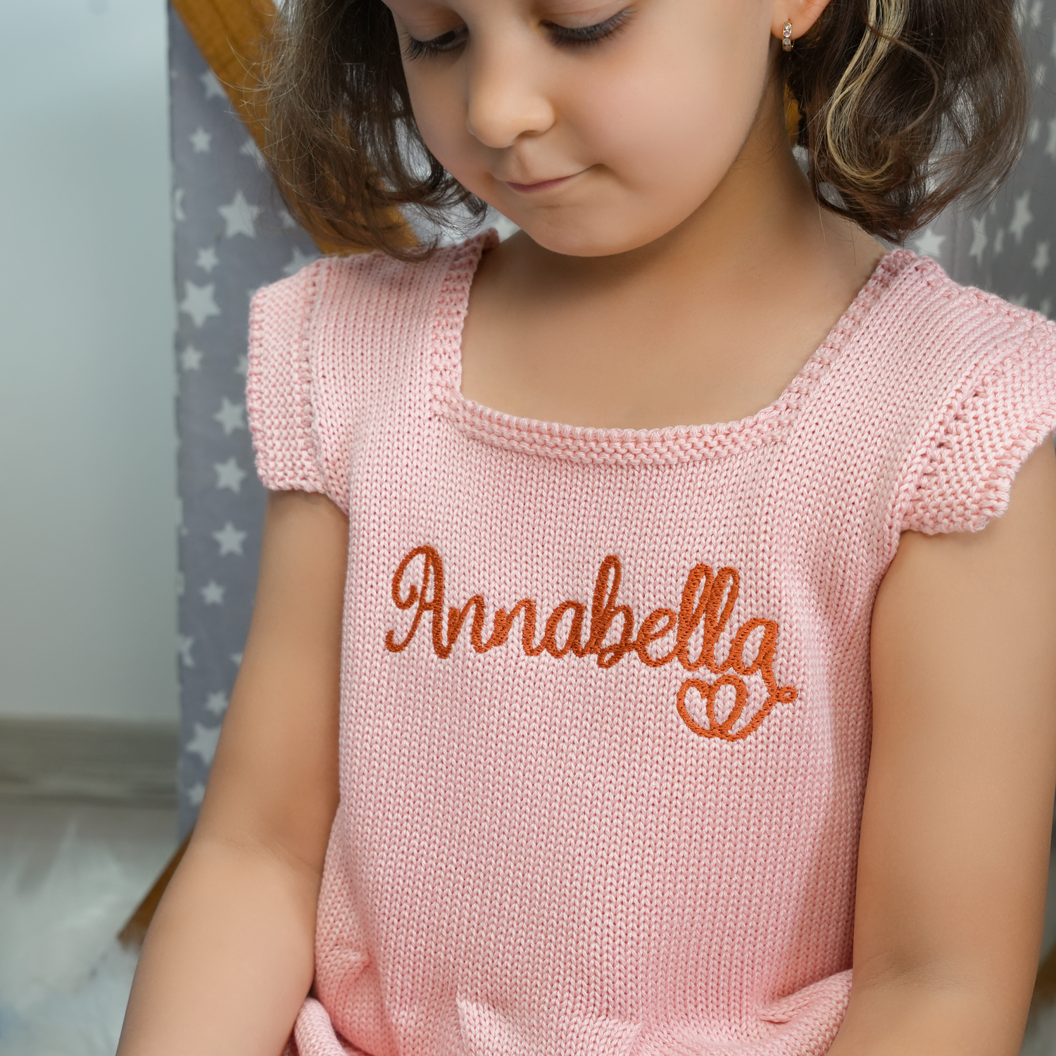 Birthday Gift Knitted Baby Girl Clothes, Personalized Baby Name Embroidered Clothes, Baby Shower Gift, New Baby Gift, Baby Girl Outfit