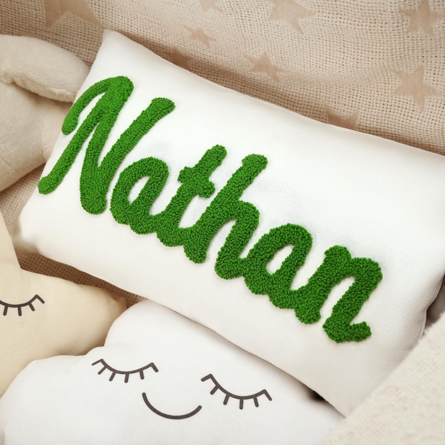 Custom Embroidered Name Pillow, Monogrammed Punch Needle Baby Pillow Cover, First Birthday Gift, Baby Boy Gift, Baby Bedroom Decor Gifts