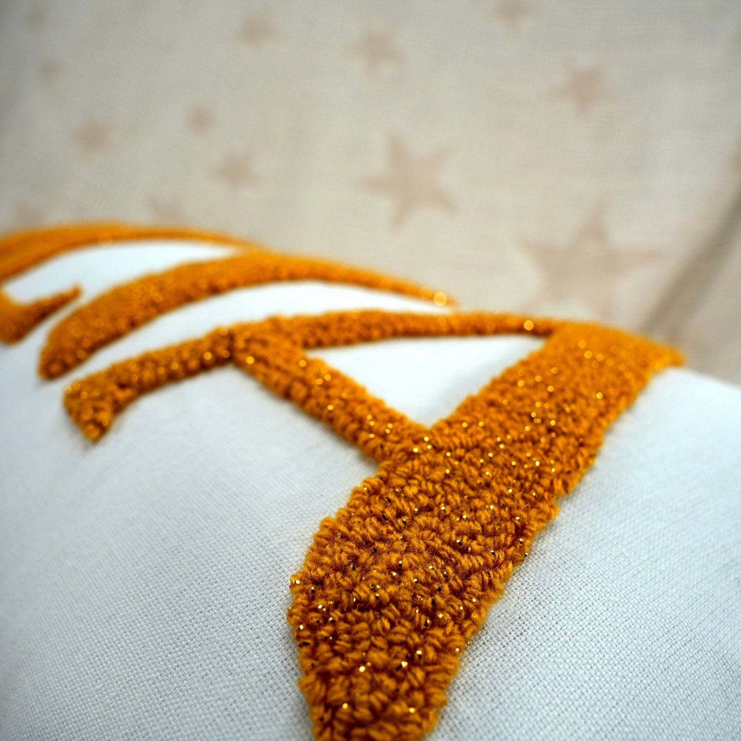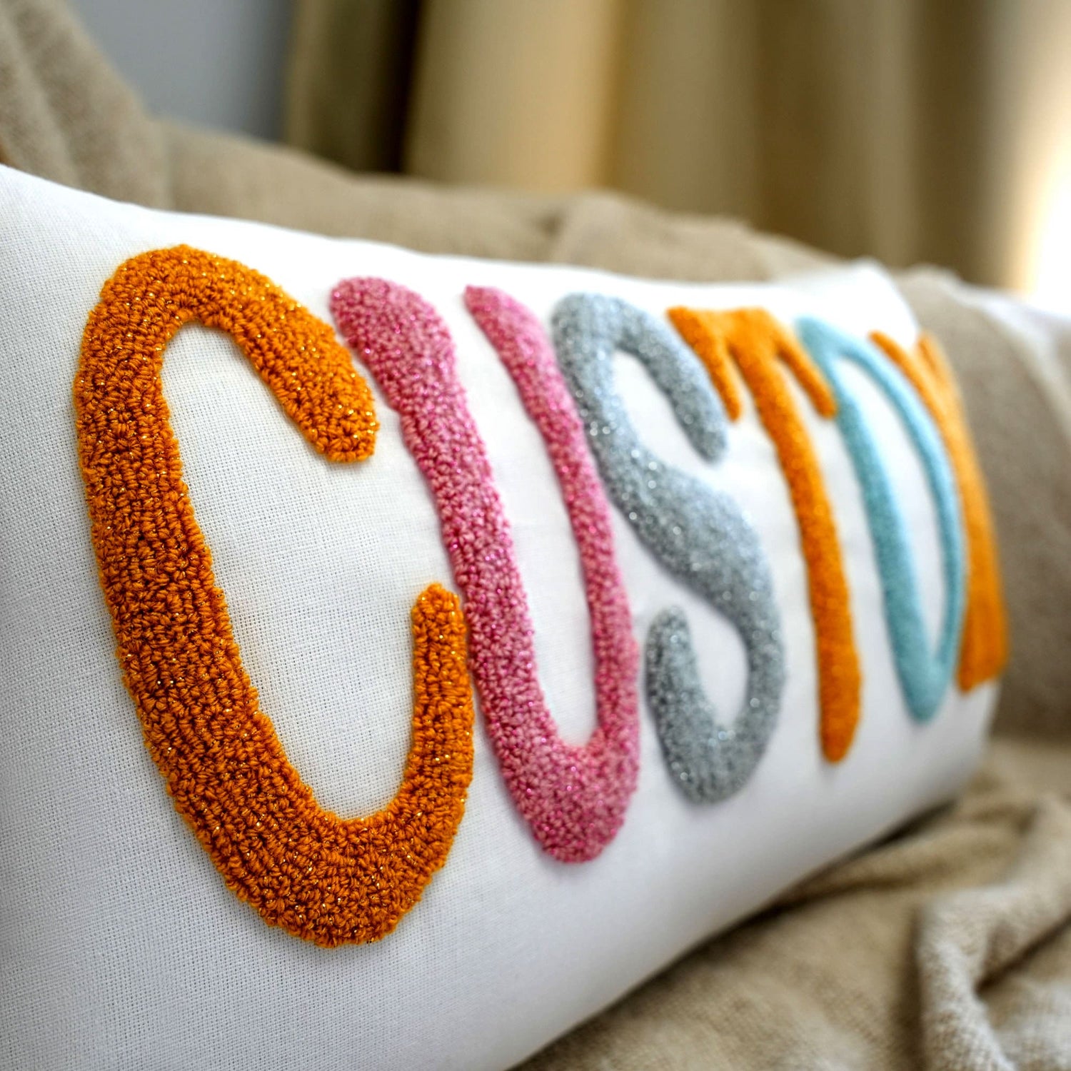 Custom Gold Glitter Punch Needle Pillow, Handmade Embroidered Pillow Cover, Home Decor, Personalized Gift, Gift for Her, Preppy Room Decor