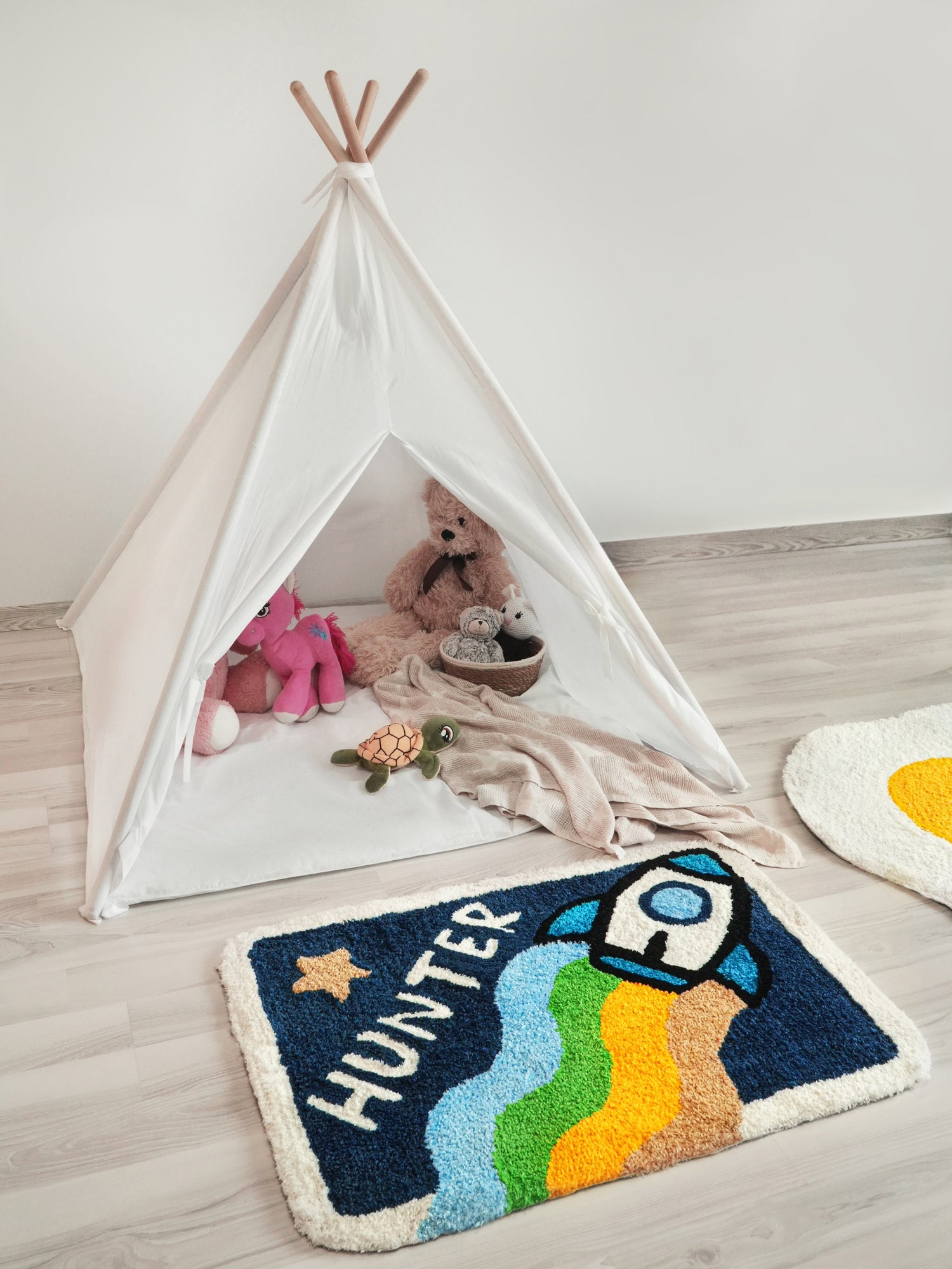 Transform your baby's nursery or playroom into a whimsical and cozy haven with this personalized, handcrafted tufted rug. It's a perfect way to add a touch of warmth, charm, and safety to your child's space, making it a fun and functional addition to their world.