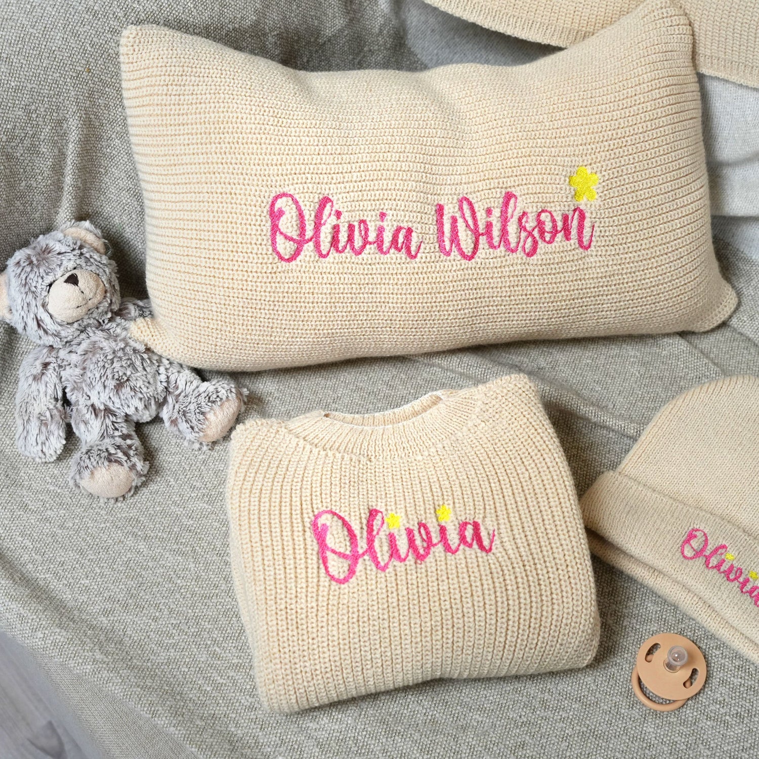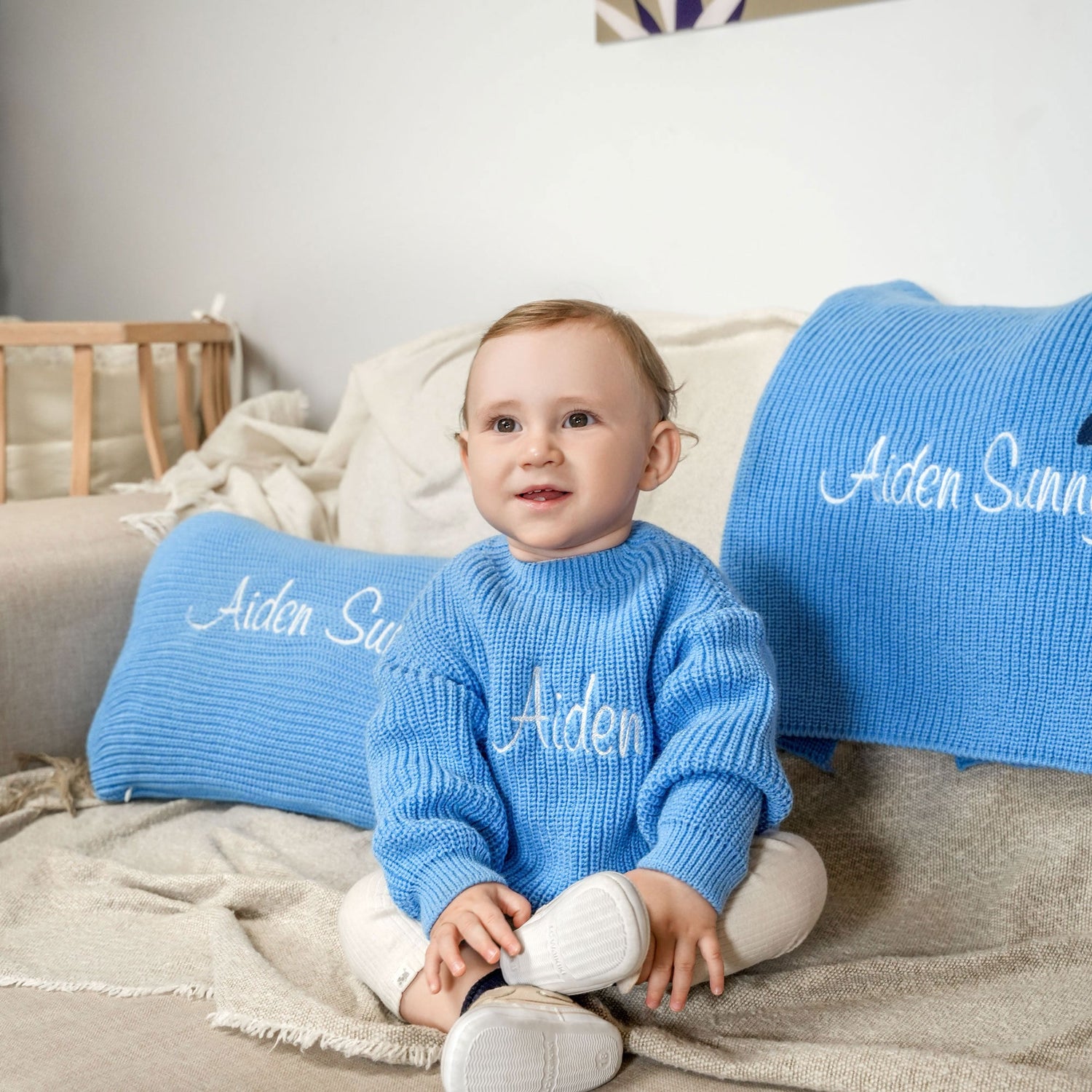 Custom Name Baby Embroidered Sweater, Personalized Knitted Sweater, Baby Shower Gift, Newborn Gift, Christmas Gift, Toddler Gift, Baby Gift
