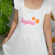 Imagine her delight in a dress made just for her! This dress is lovingly crafted from soft, breathable knit fabric for ultimate comfort throughout the day. But the true magic lies in the personalization. Her name is delicately embroidered on the front, transforming this dress into a treasured keepsake that she'll cherish as she grows.