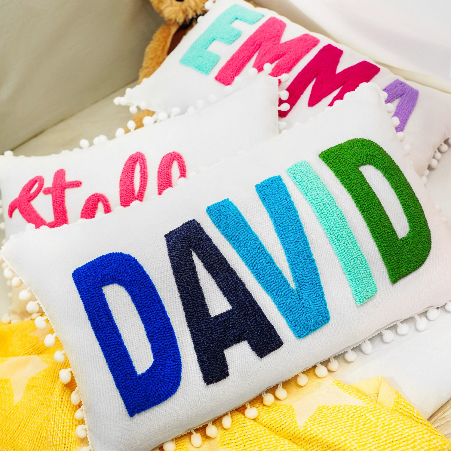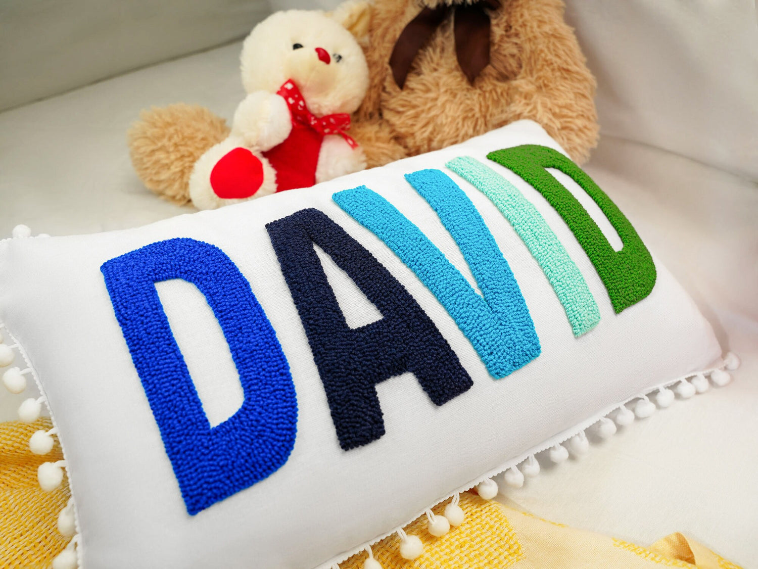 Personalize Name Punch Needle Tufty Pillow Gift for Newborn Baby Boy, Custom Name Pillow, Baby Nursery Decor, Kid Bedroom Decor, Baby Shower