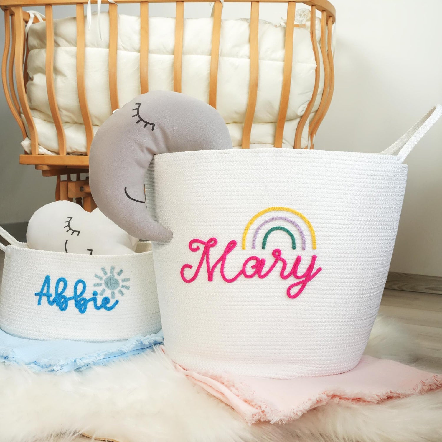 Personalized Baby Gift Basket, Baby Shower Gift, Newborn Gift, Kids Room Storage Basket, Cotton Rope Toy Basket,Nursery Decor Blanket Basket