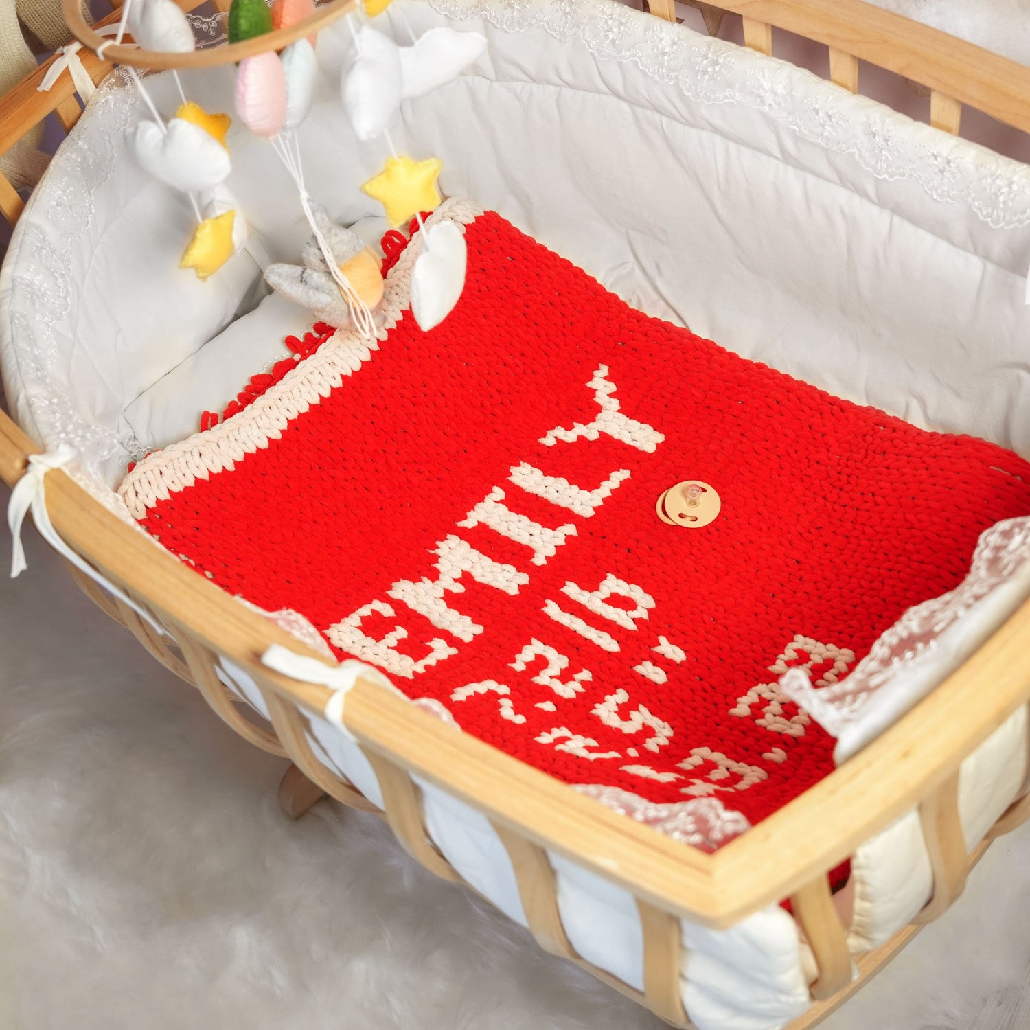 Celebrate new beginnings with this unique and thoughtful hand-knitted blanket, a gift that will be cherished for years to come.