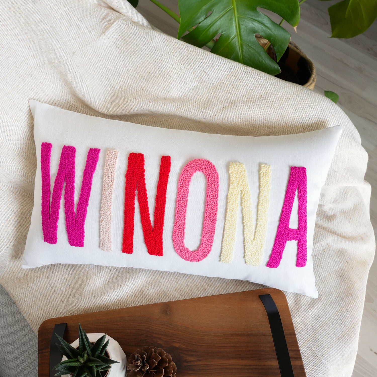 Personalized Baby Name Punch Needle Pillow, Baby Shower Gift, Nursery Decor, Custom New Baby Gift, Baby Girl Personalized Name Gift Idea