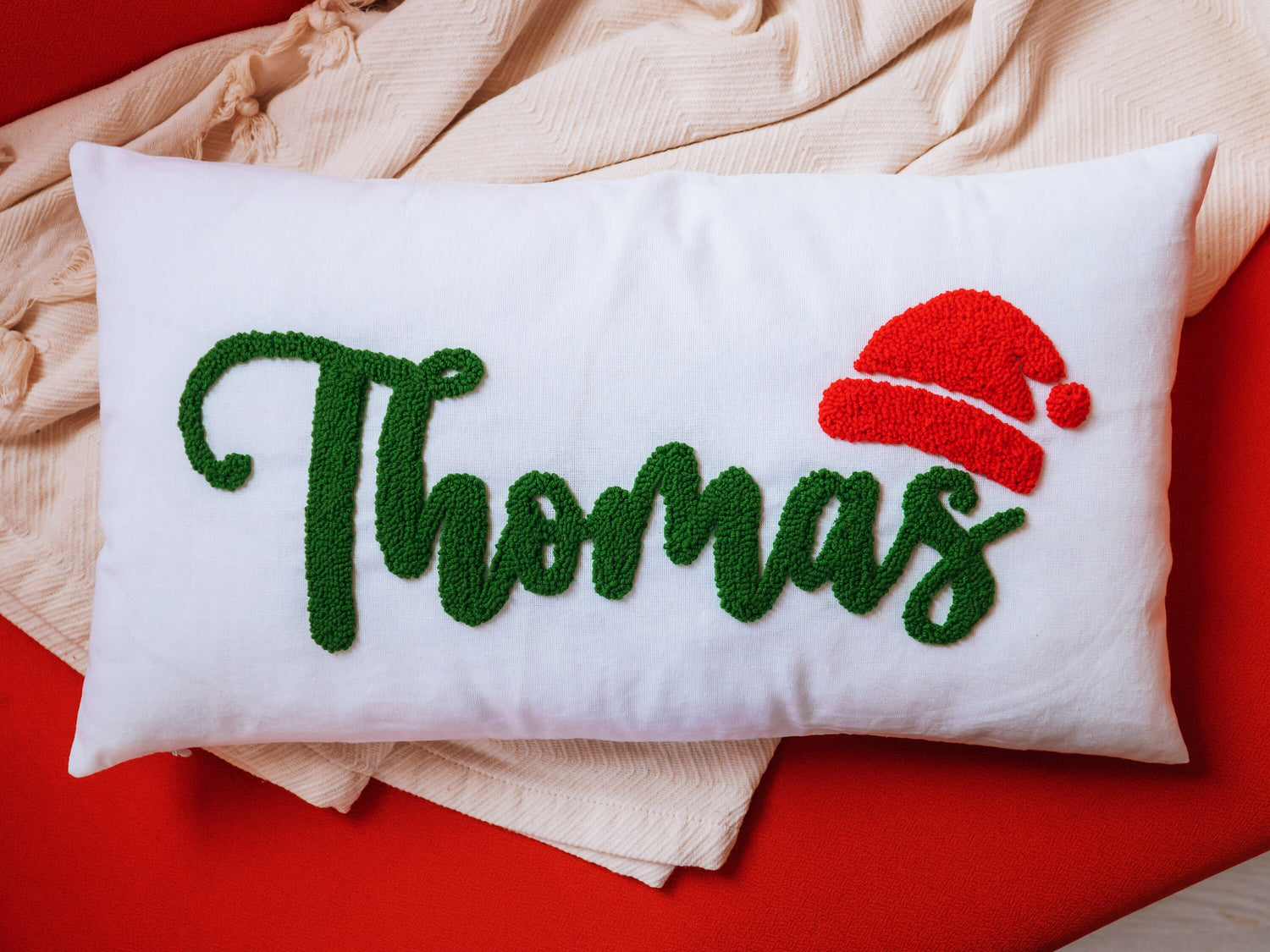 Personalized Christmas Name Embroidered Pillow, Christmas Gift, Gift for Grandchild, Custom Punch Needle Pillow, Christmas Bedroom Decor