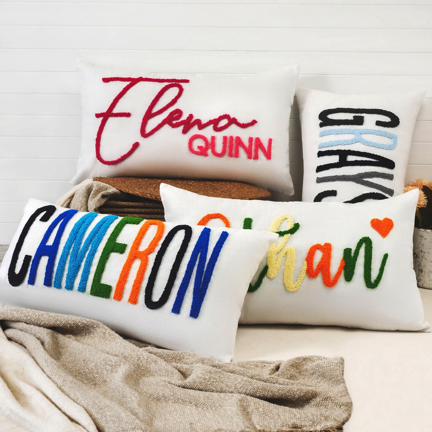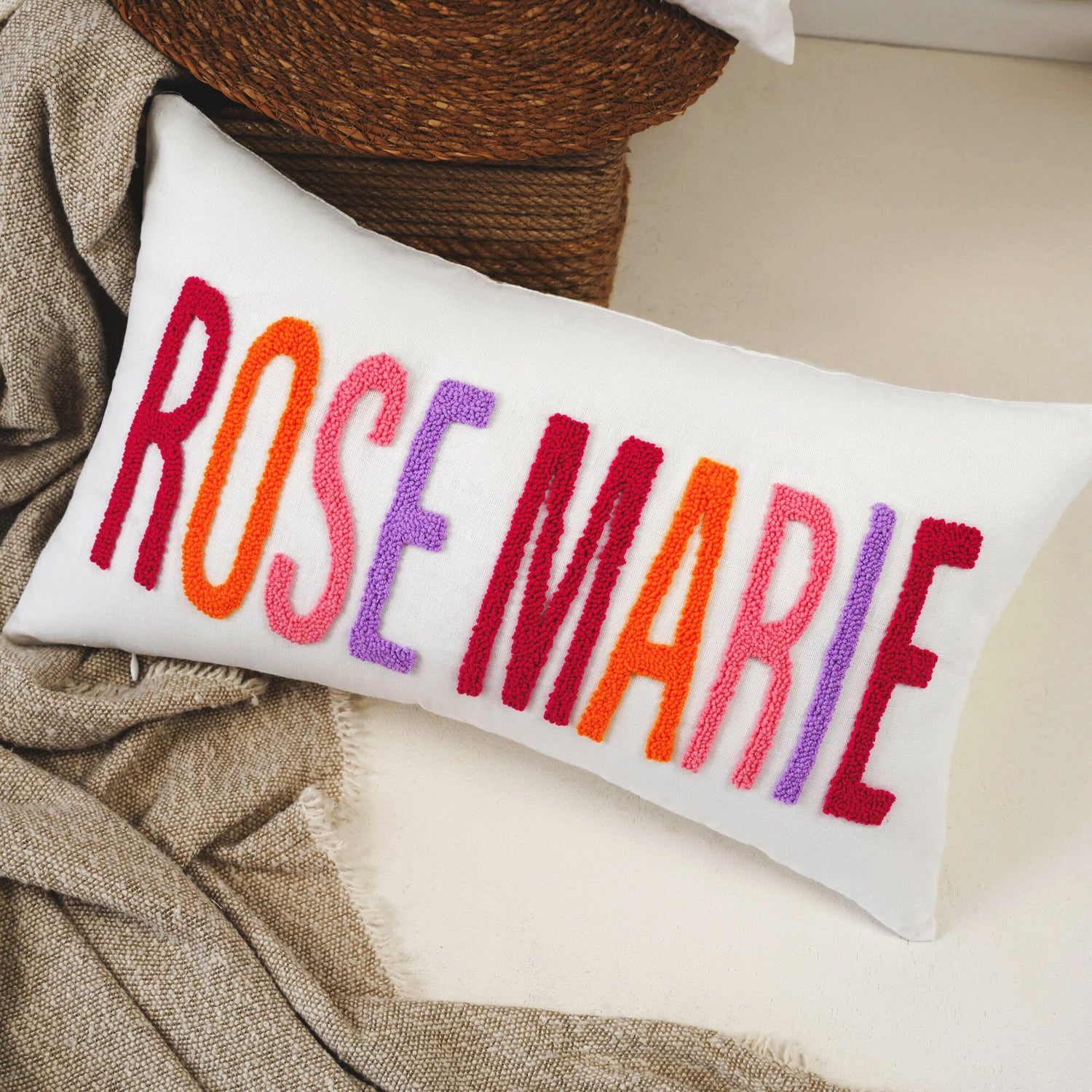 Personalized Girl Baby Room Decor, Baby Girl Nursery Pillow, Custom Pillow Cover, Personalized Pillow, Punch Needle, Girl Kid Birthday Gift