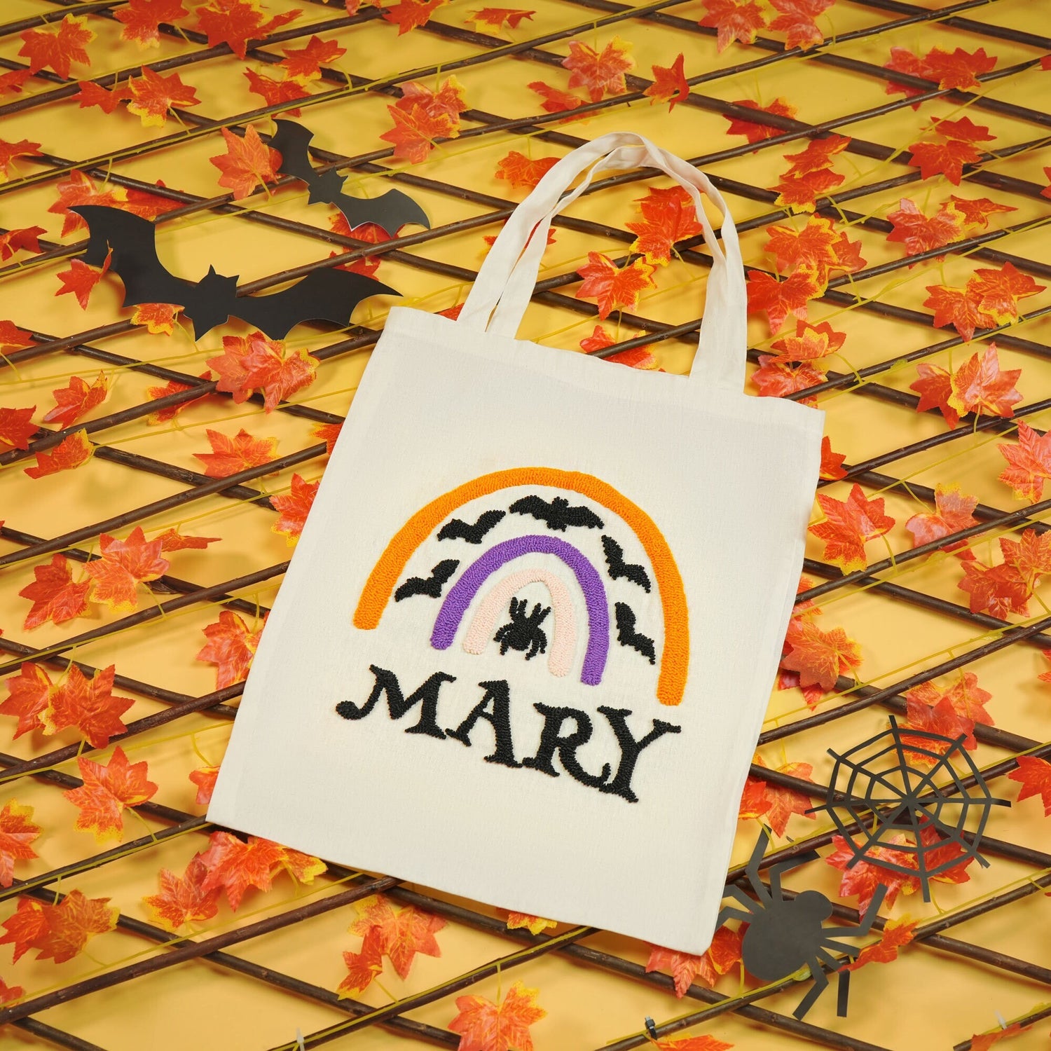Personalized Kids Halloween Embroidered Punch Needle Bag, Halloween Trick or Treat Bag, Name Halloween Bag, Spooky Season, Gift for Kids