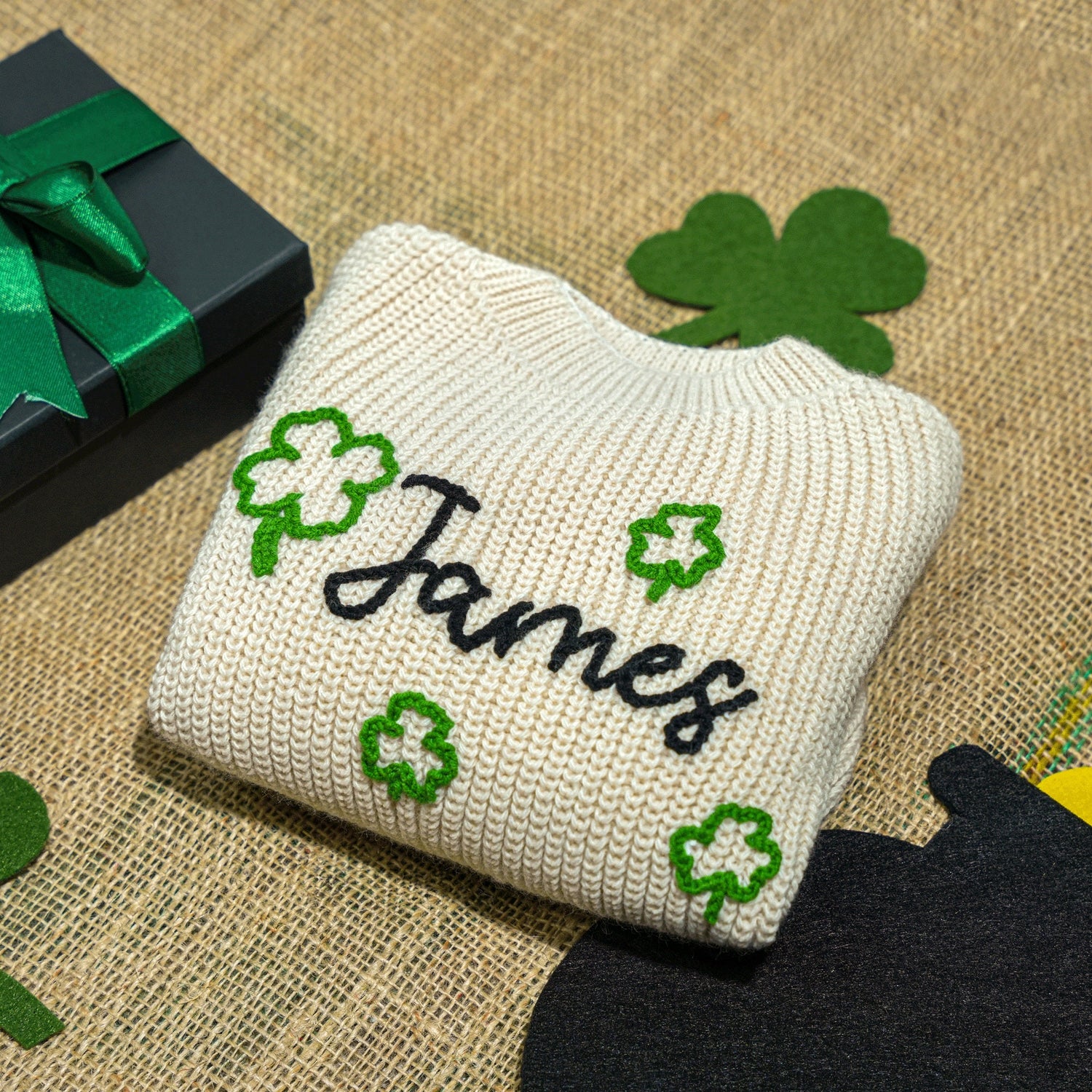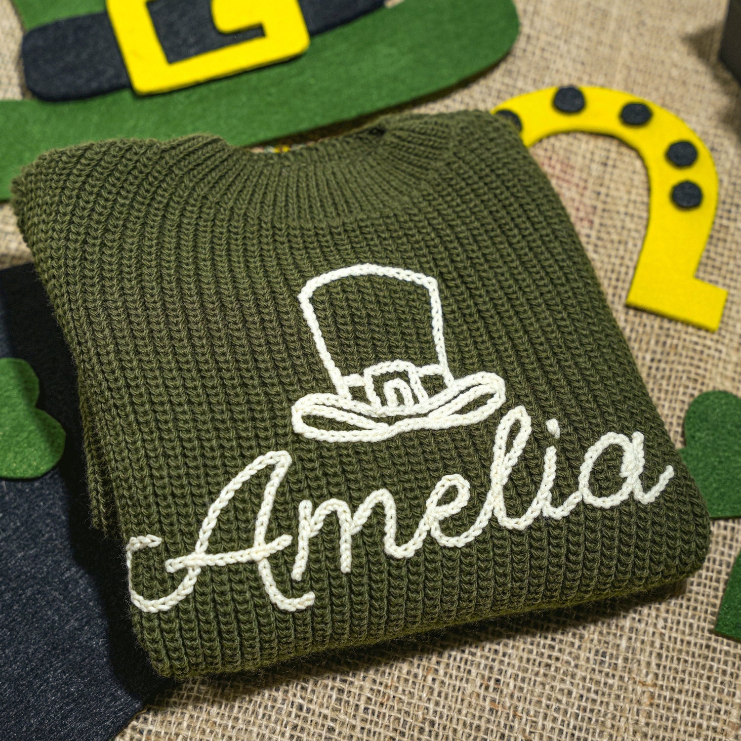 Personalized Knitted Irish Baby Sweater, Custom Embroidered Baby Sweater, New Born Gifts, Lucky Charm Baby Sweater, Custom, Irish Baby Gifts