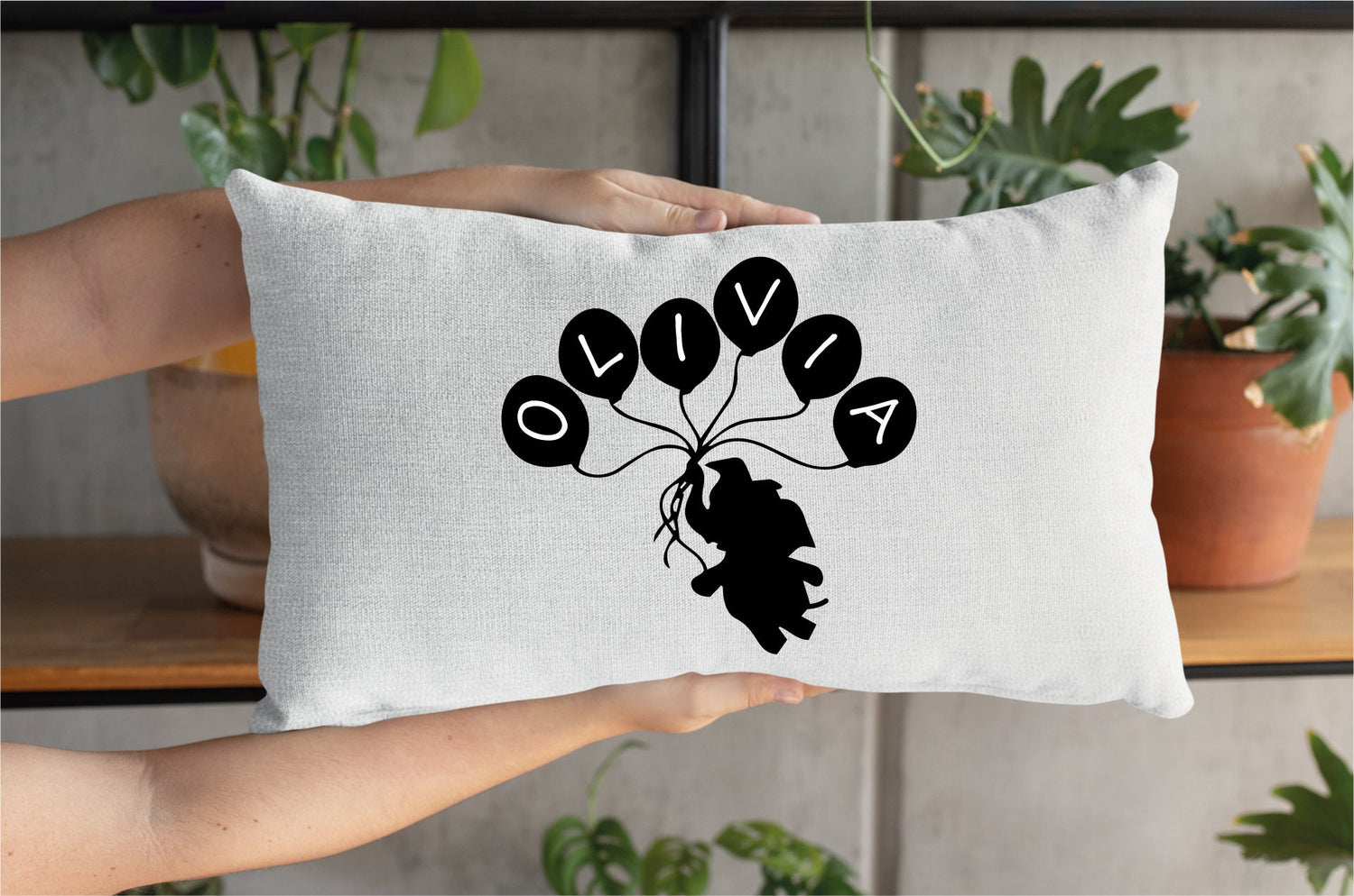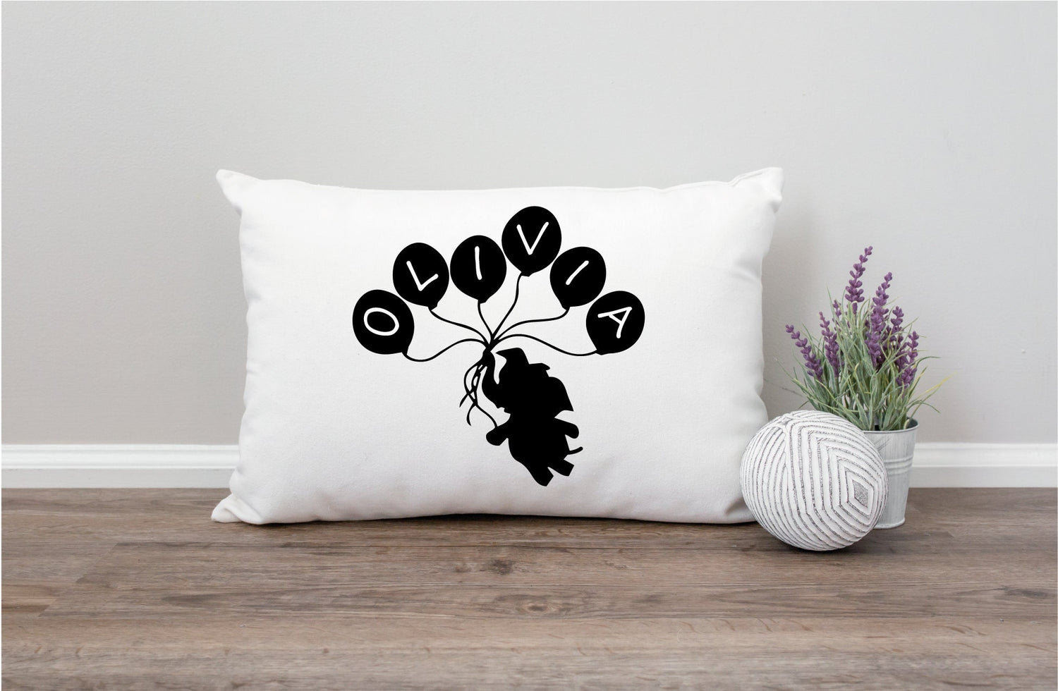 Personalized Name Pillow, Custom Pillow, Nursery Pillow, Baby Room Pillow, Elephant Baloon Baby Shower Gift, Custom Name Nursery Pillow