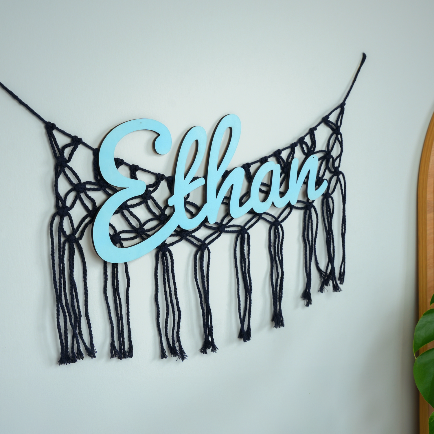 Welcome your newest arrival with a touch of handcrafted warmth and personalize their space with a stunning wooden name sign. This unique piece blends the natural beauty of unfinished wood with delicate [macrame technique - e.g., 'weaving,' 'knotting'] for a touch of handmade charm. Each sign is lovingly crafted, making it a truly special addition to any nursery and a timeless keepsake to cherish for years to come.
