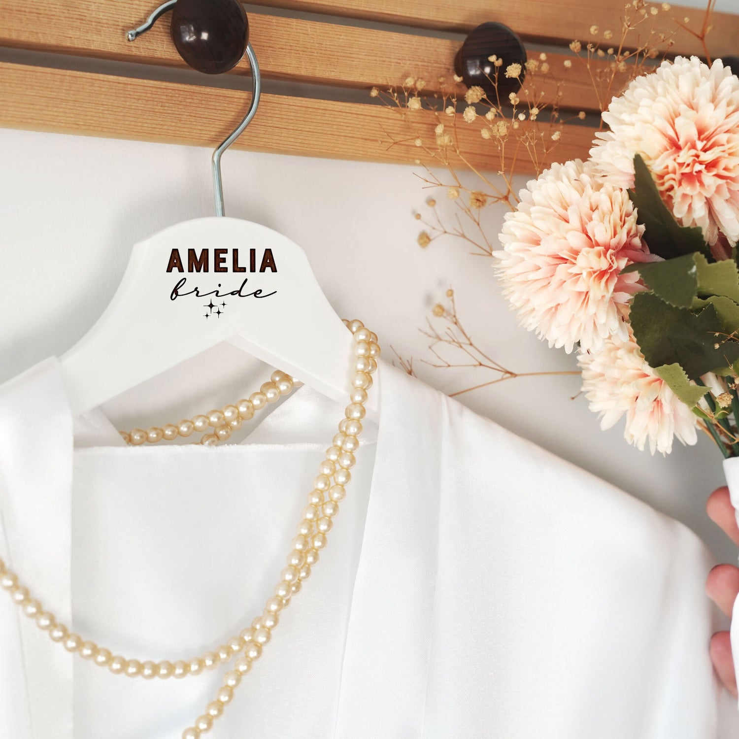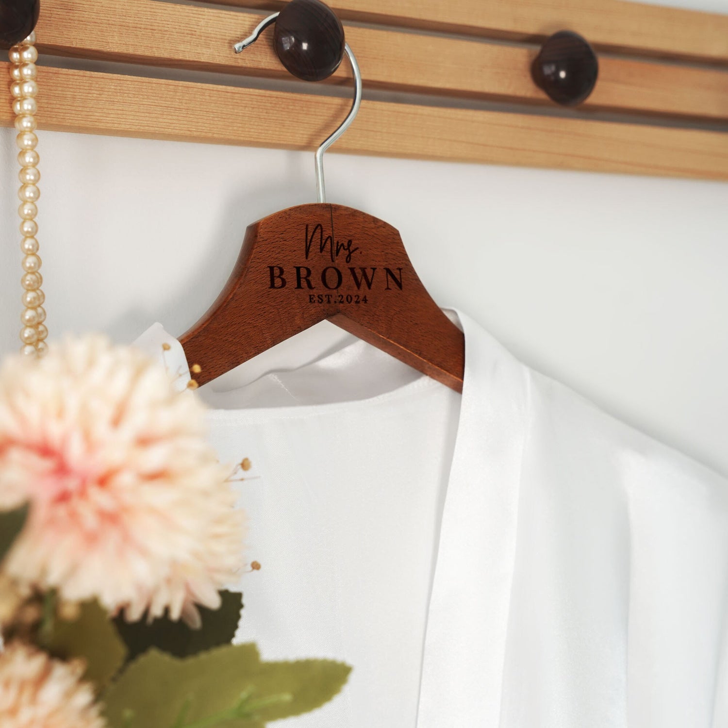 Make your wedding day even more special with these personalized wooden hangers.