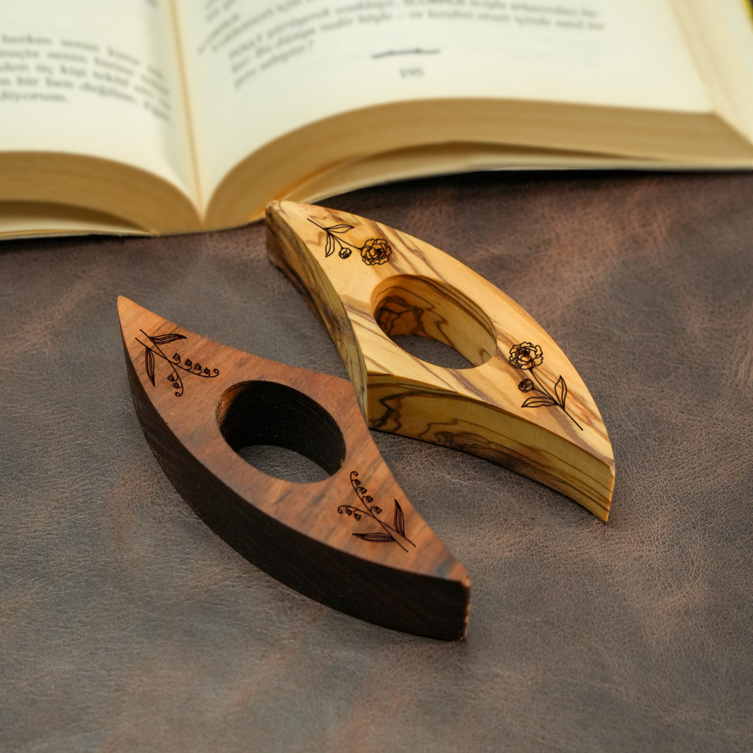 Expertly crafted from your choice of rich Walnut or timeless Oak, this thumb book opener features delicate floral engravings that turn a functional tool into a piece of art. It is the perfect blend of utility and aesthetic charm, designed to reduce hand strain so you can focus on the story.