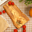 The board features stunning natural olive wood grain and a unique live edge shape, ensuring that no two pieces are exactly alike. With custom laser engraving, you can add family names, a special recipe, or a loving message, instantly turning a functional kitchen item into a treasured family heirloom