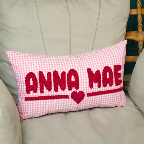 360.00TLUnit price /UnavailablePersonalized Gingham Baby Name Pillow: Punch Needle Embroidered, Cute Baby Shower Gift