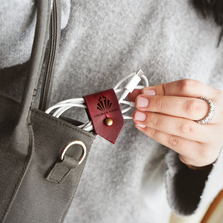 Custom Leather Cable Organizer | Baptism Gift | Church Gifts