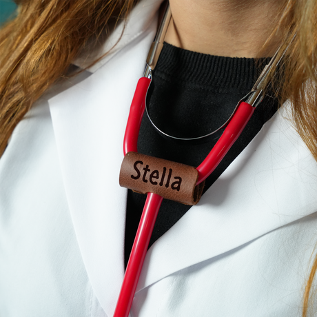 Personalized Leather Stethoscope Name Tag: Custom Engraved Medical ID Charm