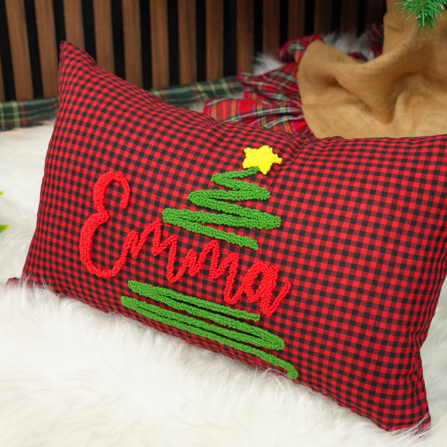 Christmas Punch Needle Personalized Pillow: Gingham Holiday Home Decor – ArriaHome LLC