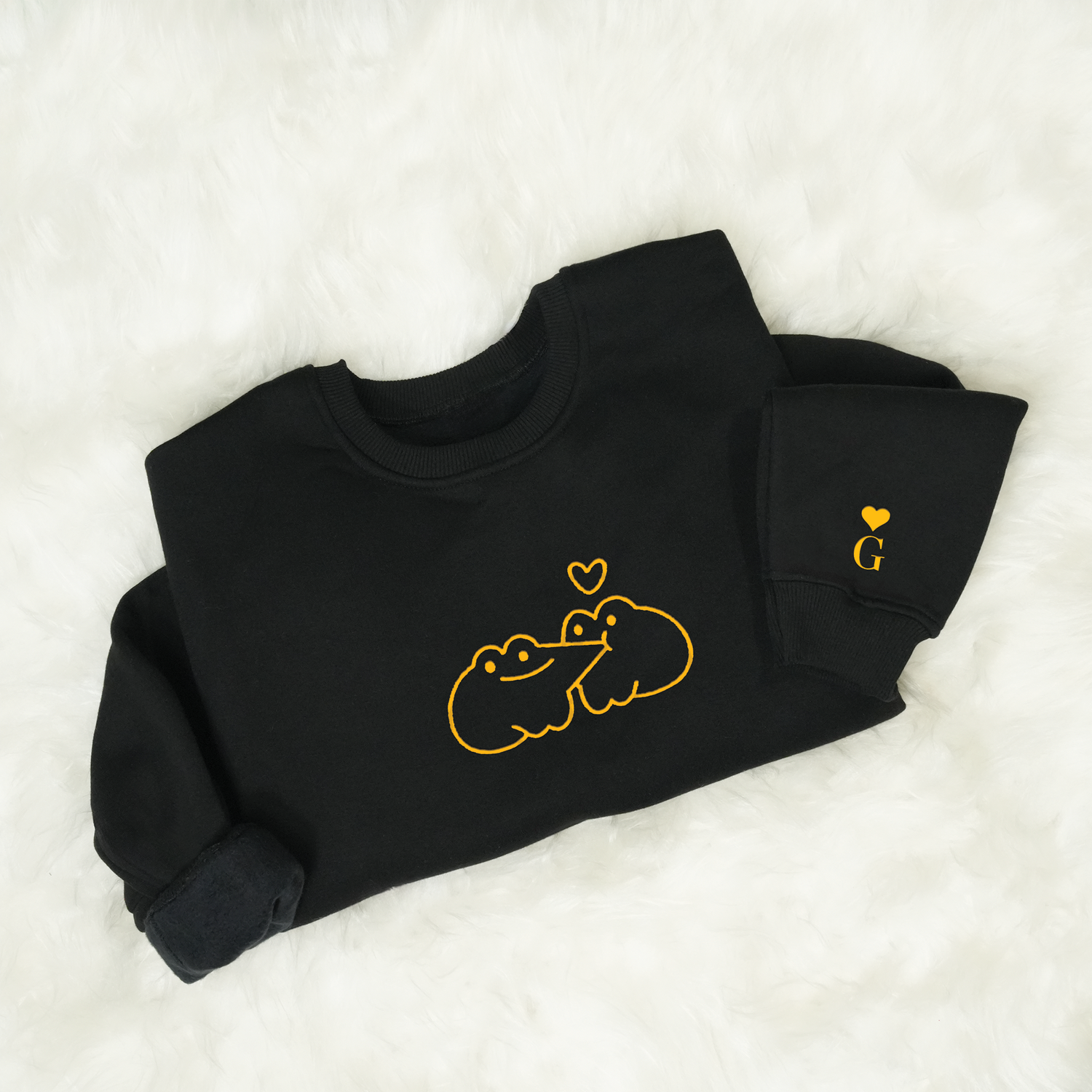 Celebrate your relationship with a touch of whimsical charm! These matching couple sweatshirts feature an adorable, custom embroidered frog design, symbolizing comfort, happiness, and finding your perfect lily pad. It's the sweetest way to share your bond and show off your love with coordinated style.