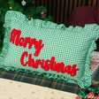 Merry Christmas Punch Needle Embroidered Ruffle Pillow: Green Gingham – ArriaHome LLC