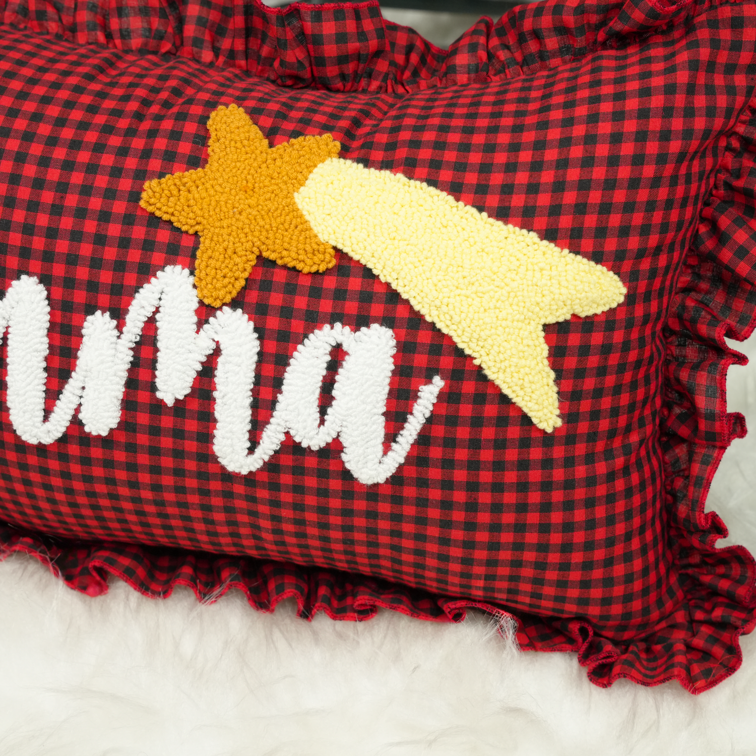 Transform your living space into a winter wonderland with a bespoke holiday cushion, crafted uniquely for you. Imagine a beautiful accent, intricately textured with the charming punch needle technique, featuring your family name, a heartwarming seasonal greeting, or a delightful festive symbol. Each piece is meticulously handmade, ensuring a rich texture, inviting warmth, and a distinct personality that will enchant your guests.