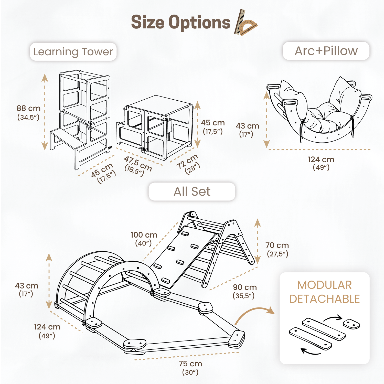 Transform any room into an adventure zone that nurtures your child's natural curiosity and physical development. Inspired by the renowned Montessori philosophy, this versatile 3-in-1 climbing set provides a safe, stimulating, and beautiful space for active play right at home. It’s more than a toy—it’s an investment in your child’s confidence and lifelong learning journey.