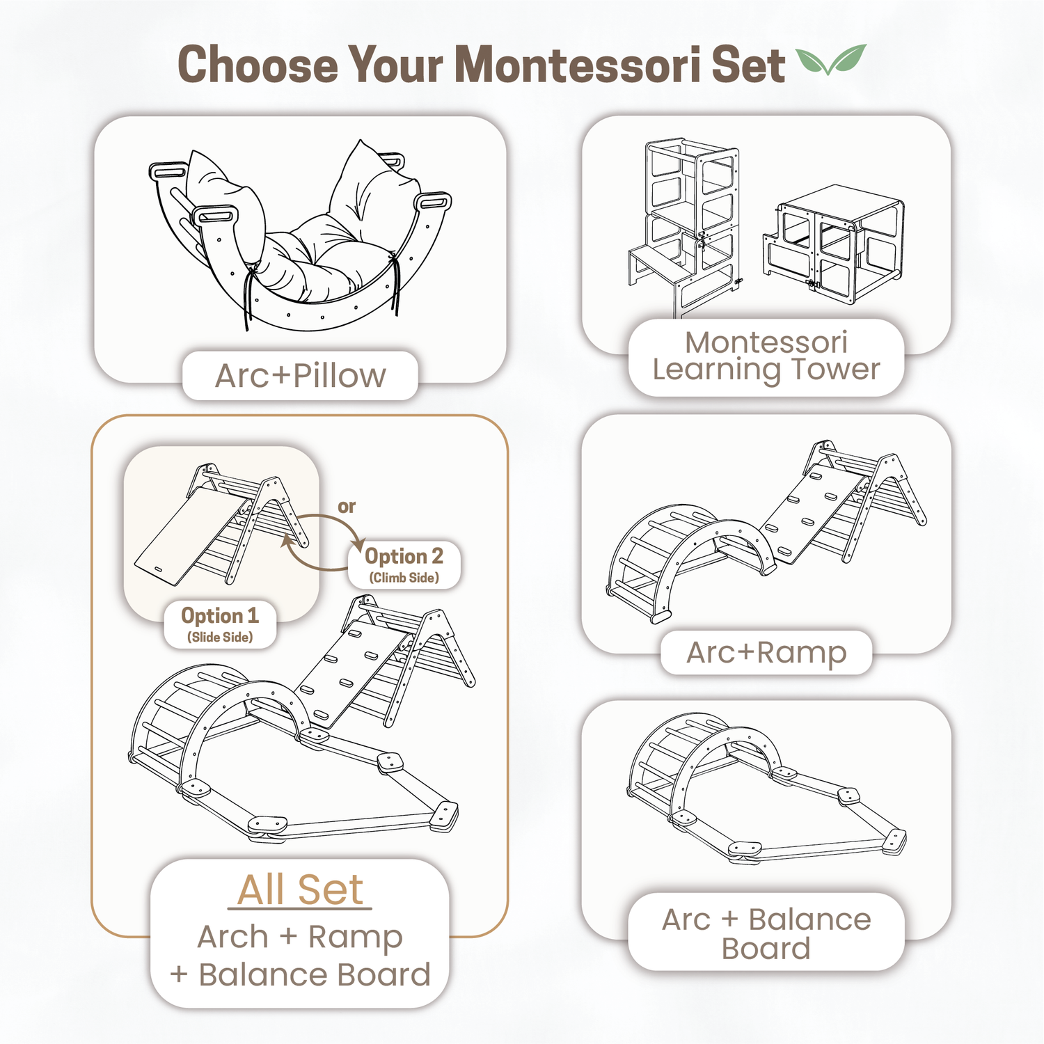 Montessori Climber Gym Set 3in1: Climbing Triangle, Arch & Slide, Indoor Playground
