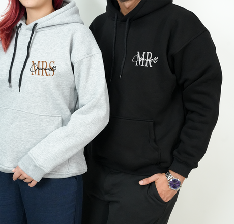 Personalized Mr Mrs Hoodie with Last Name Embroidered Honeymoon Apparel: Engagement Gift for Couple