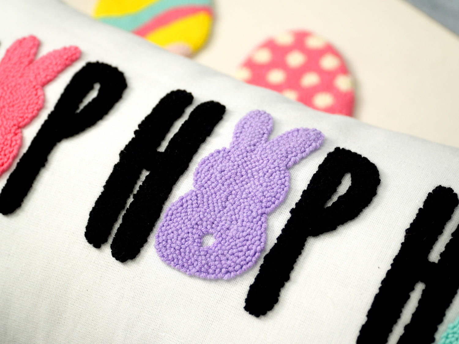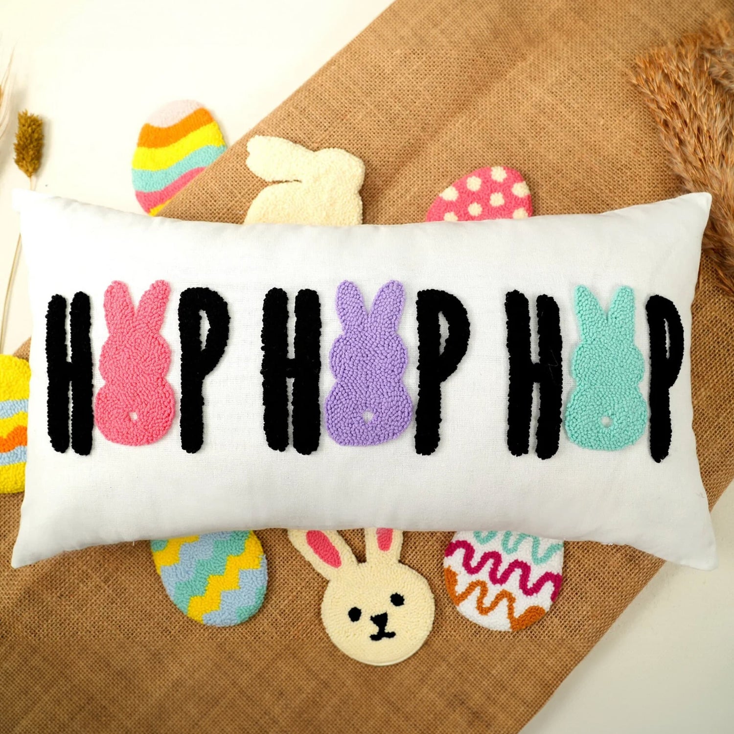 Easter Bunny Embroidery Pillow, Personalize Easter Decorations, Punch Needle Handmade Spring Pillow, Spring Decor Hop Hop Rabbit Pillow Gift